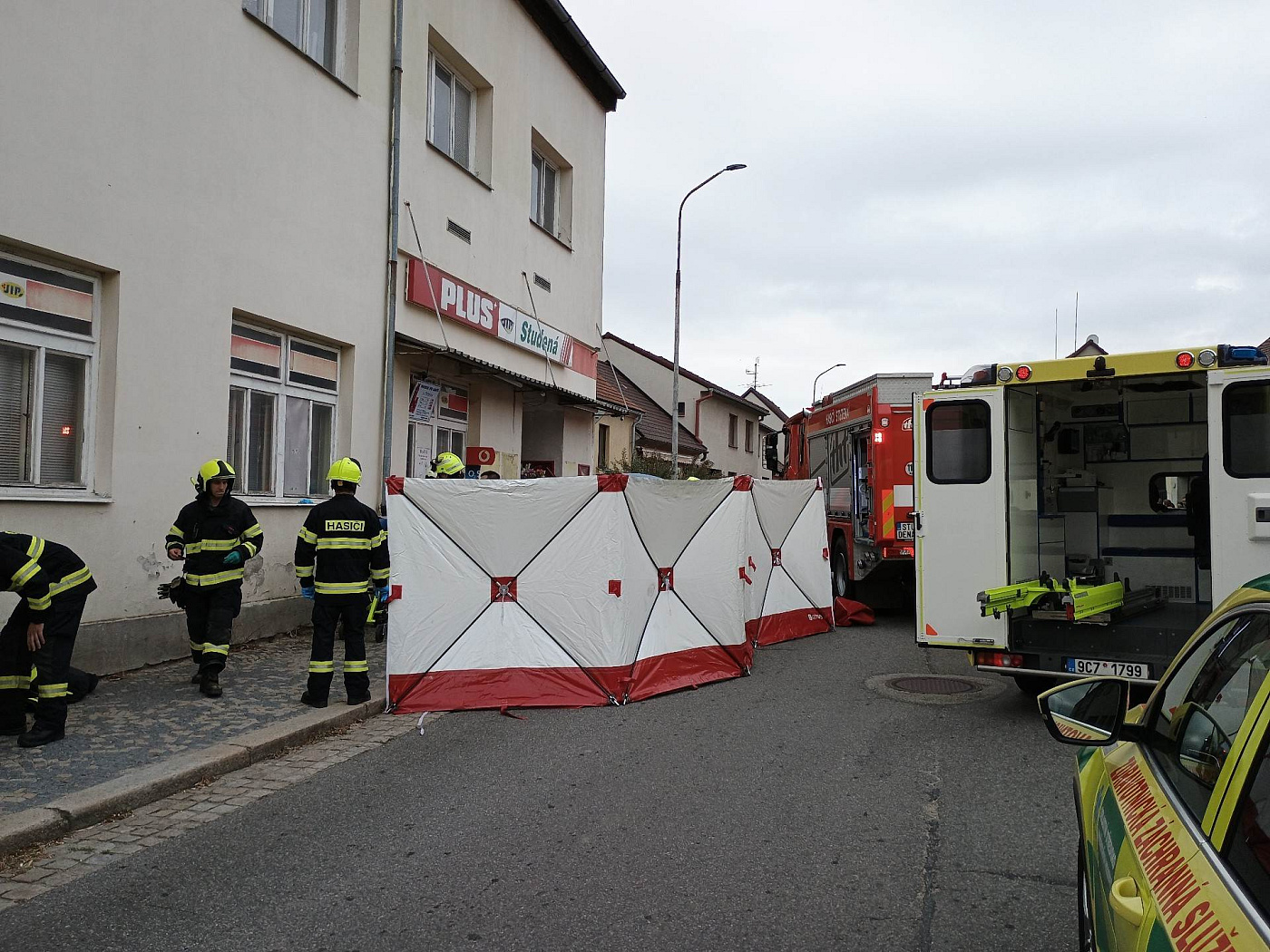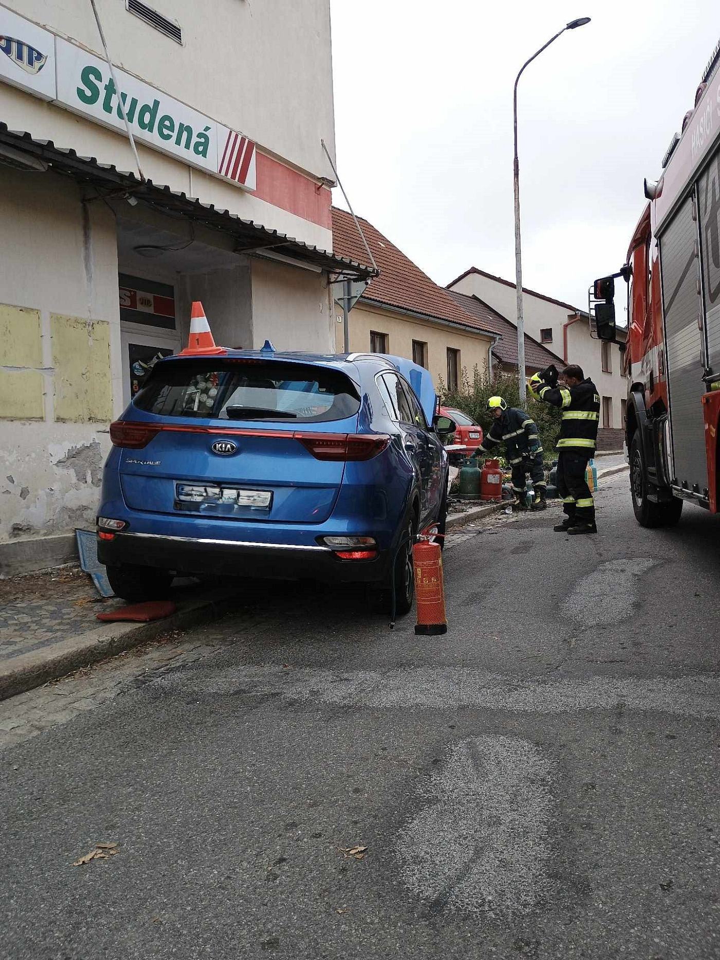 Od 15:05 hodin zasahuje profesionální jednotka z Dačic s místní dobrovolnou jednotkou ve Studené, kde narazilo auto do prodejny. Zraněná osoba byla do nemocnice transportována letecky. Hasiči prověřili možné úniky látek a vznik požáru – všechna zjištění byla negativní.