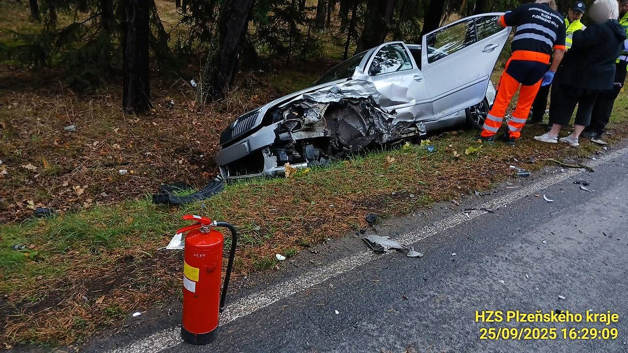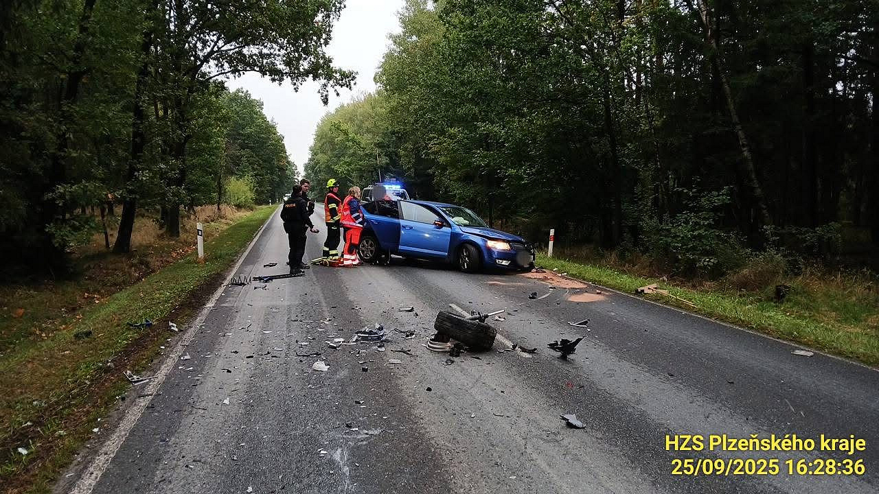 Na silnici 605/I před odbočkou na Plešnice směrem od Plzně se stala nehoda dvou osobních aut. Dvě osoby skončily v péči záchranářů. Komunikace je uzavřena. Hasiči likvidují únik pohonných hmot.