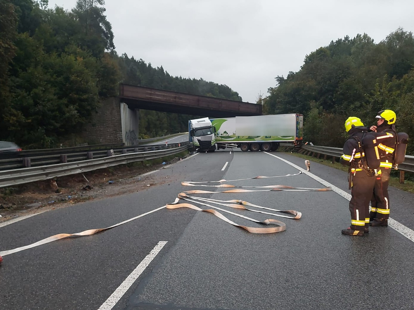 Jednotky z Liberce a Turnova zasahují na rychlostní komunikaci R35 pod viaduktem u obce Žďárek, kde došlo k dopravní nehodě nákladního automobilu do svodidel. Silnice uzavřena v obou směrech, zastaven i železniční provoz. U události hasiči evidují 1 zraněnou osobu.
