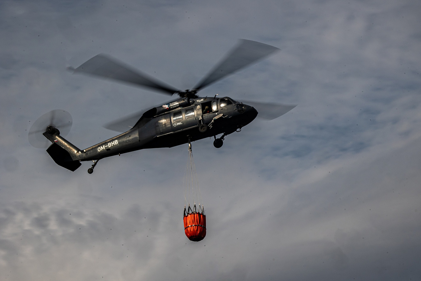 Letecké hašení v Česku aktuálně zajišťují jak vrtulníky Policie ČR, tak přes léto také pronajaté stroje Black Hawk.