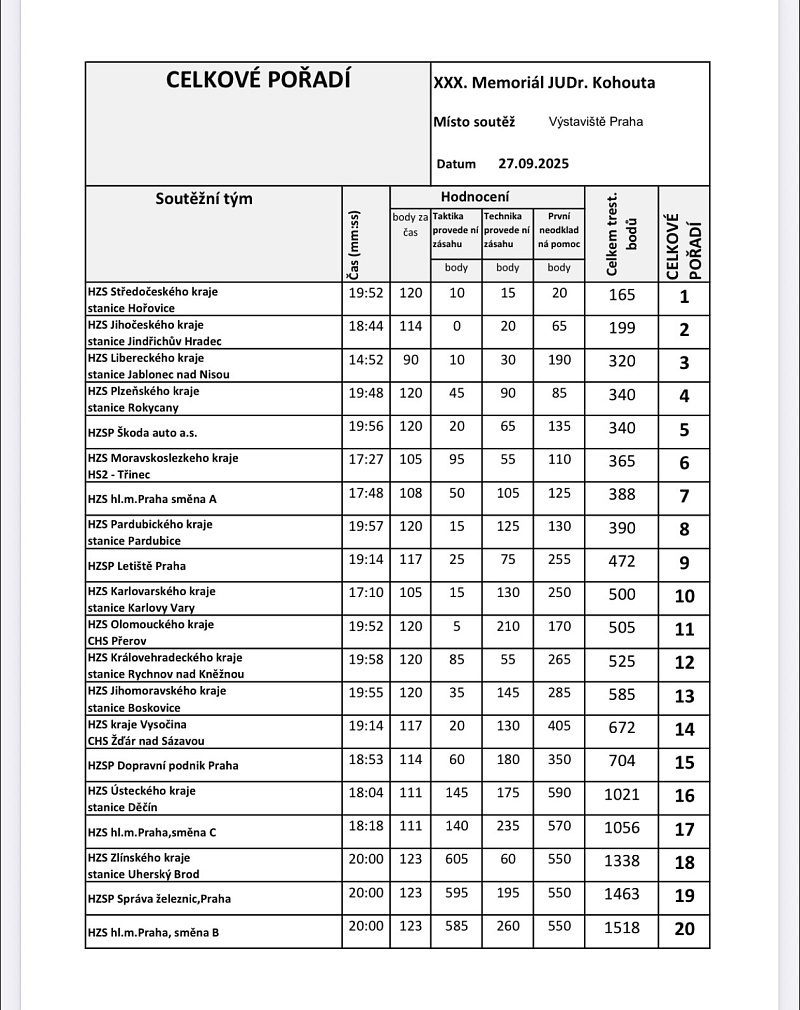 Tento ročník Memoriálu JUDr. Františka Kohouta opět potvrdil, že za každým úspěšným zásahem stojí nejen technika, ale především lidé – odhodlaní, sehraní a připravení pomáhat.