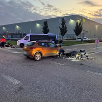 Profesionální hasiči z Mladé Boleslavi zasahují v Bezděčíně u dopravní nehody osobního automobilu, motocyklu a mikrobusu. Jedné zraněné osobě poskytli předlékařské ošetření.