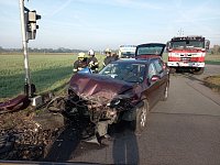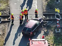 V Hradci Králové zasahují profesionální hasiči z obou Královéhradeckých stanic a hasiči Správy železnic u dopravní nehody vlaku a osobního vozidla.