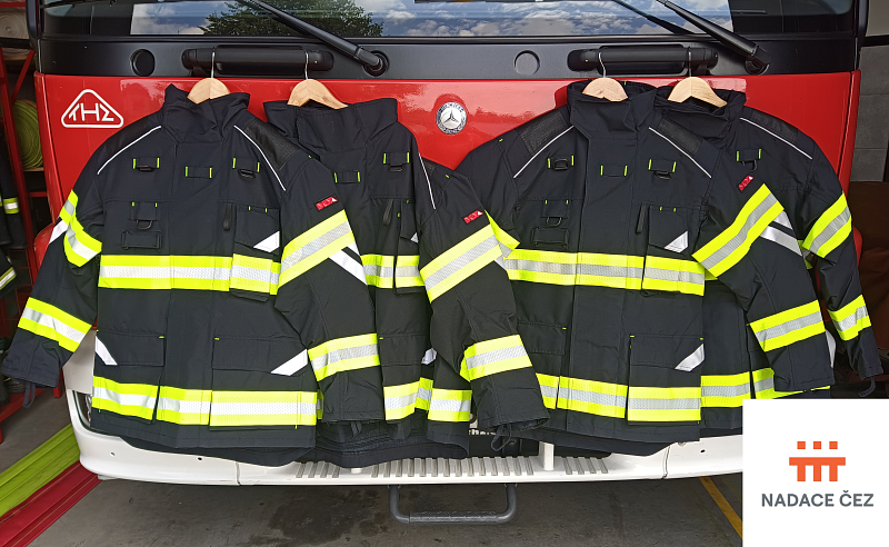 Jednotka sboru dobrovolných hasičů Bukovice pořídila díky příspěvku Nadace ČEZ čtyři nové zásahové kabáty RED FOX Elite PRO.