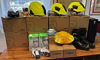Dále ochranné vybavení pro zasahující členy 4 ks helem do uzavřených prostor Rosenbauer H30 s příslušenstvím, 4 ks lehkých technických helem Rosenbauer H10 s příslušenstvím, 6 ks polomasek Vallfirest včetně náhradních filtrů pro ochranu dýchacích cest při lesních požárech či práci v prašném prostředí a 1 pár zásahových bot Jolly.