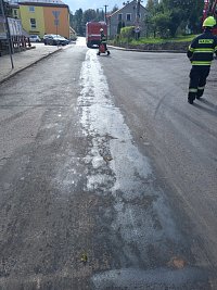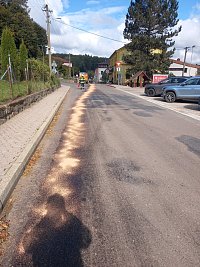 V obci Bernartice na Trutnovsku hasiči na komunikaci zlikvidovali skvrnu od motorové nafty měřící cca 200 metrů. Po ošetření silnice sorbentem a úklidu se jednotky (HZS Trutnov, JSDH Žacléř) vrátily zpět na své základny.