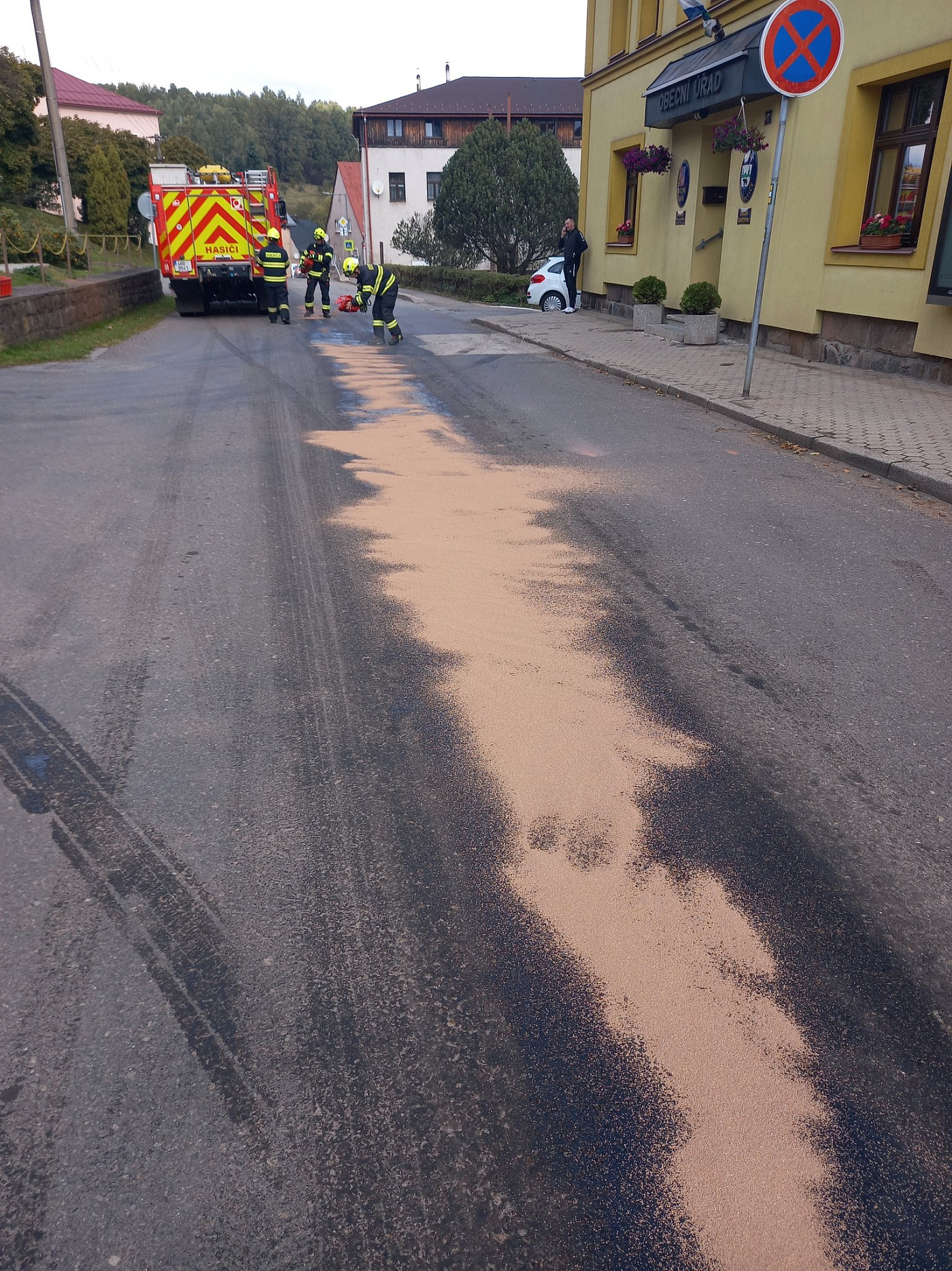 V obci Bernartice na Trutnovsku hasiči na komunikaci zlikvidovali skvrnu od motorové nafty měřící cca 200 metrů. Po ošetření silnice sorbentem a úklidu se jednotky (HZS Trutnov, JSDH Žacléř) vrátily zpět na své základny.