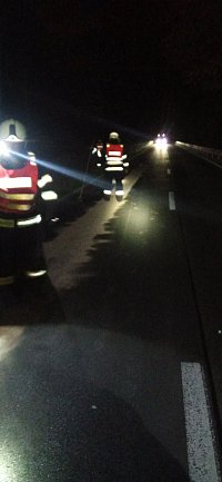 Masivní únik hydraulického oleje na pozemní komunikaci v délce cca 1,5 km v Týně nad Vltavou odstraňují místní profesionální a dobrovolní hasiči společně se SÚS Jihočeského kraje.