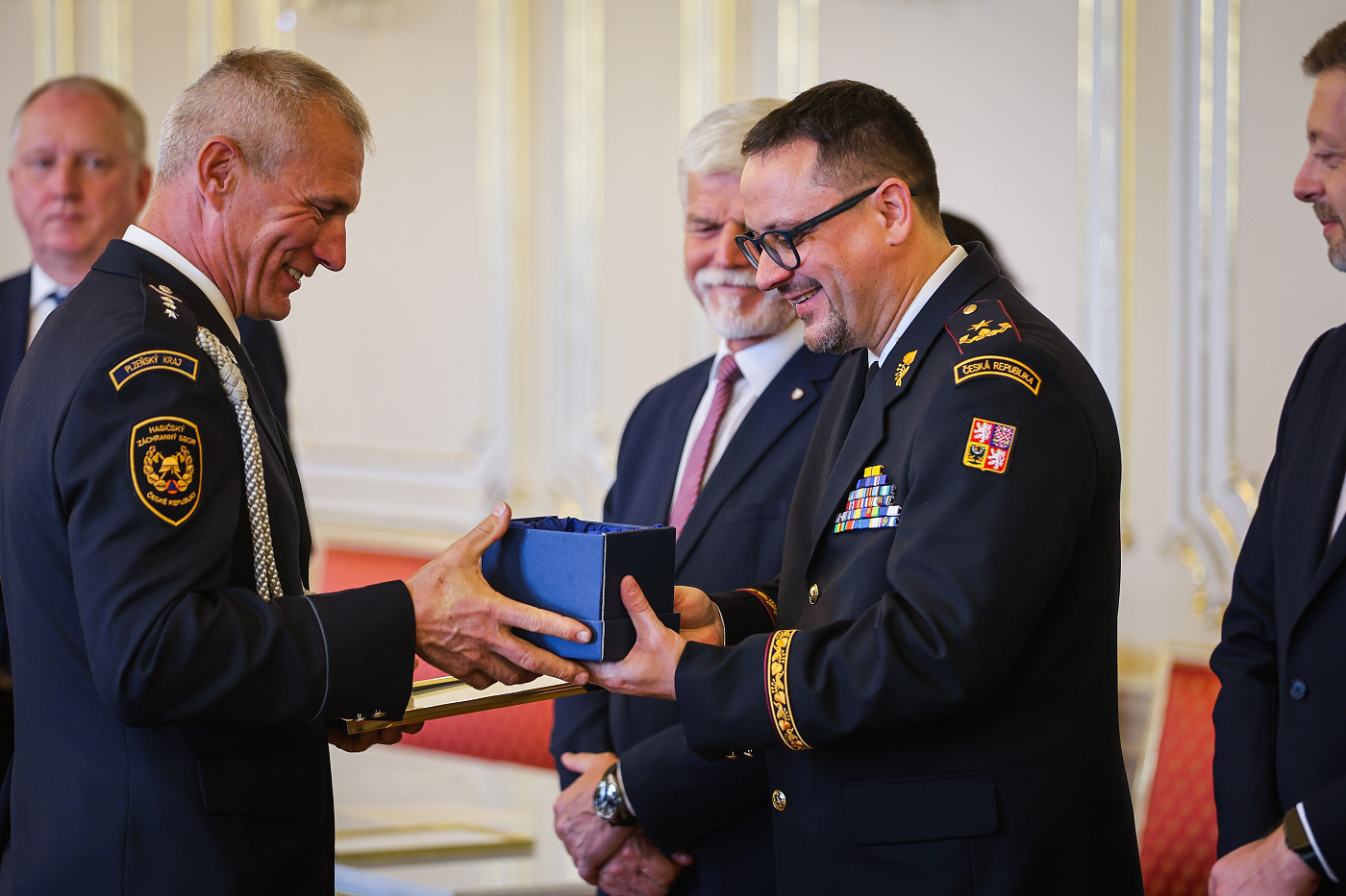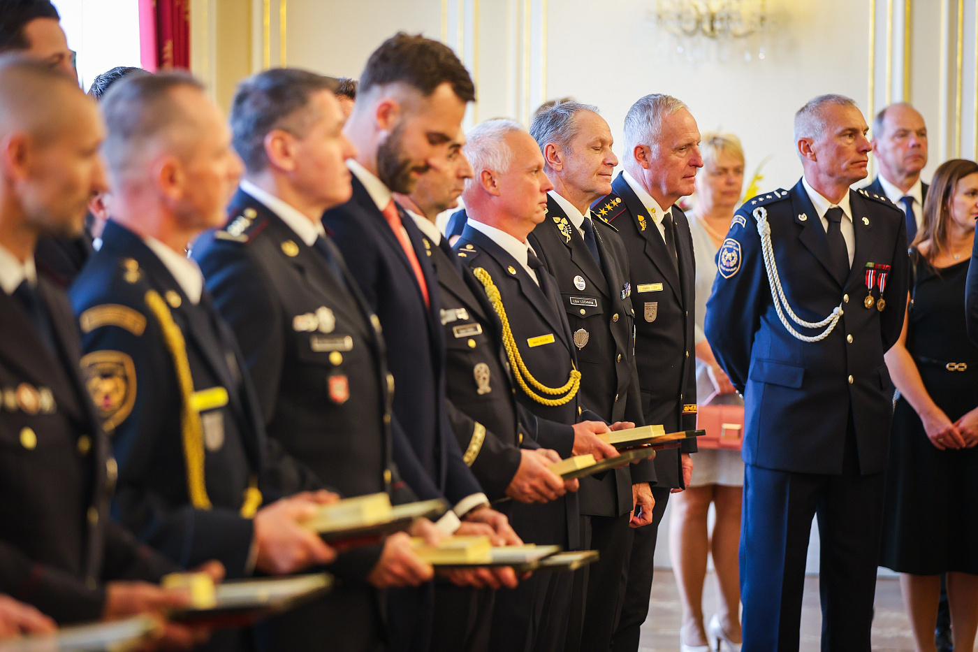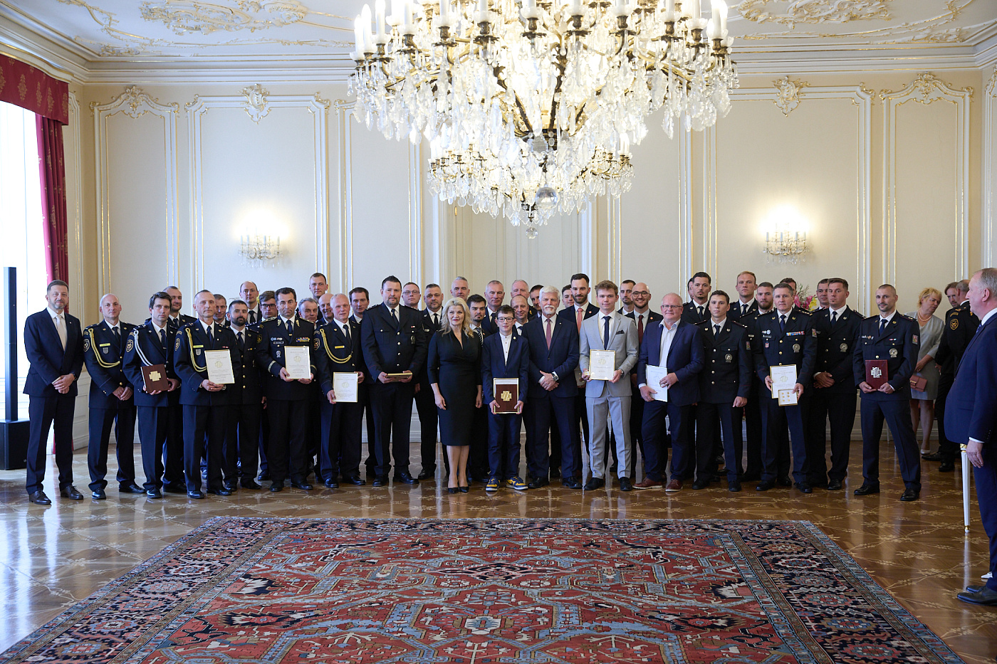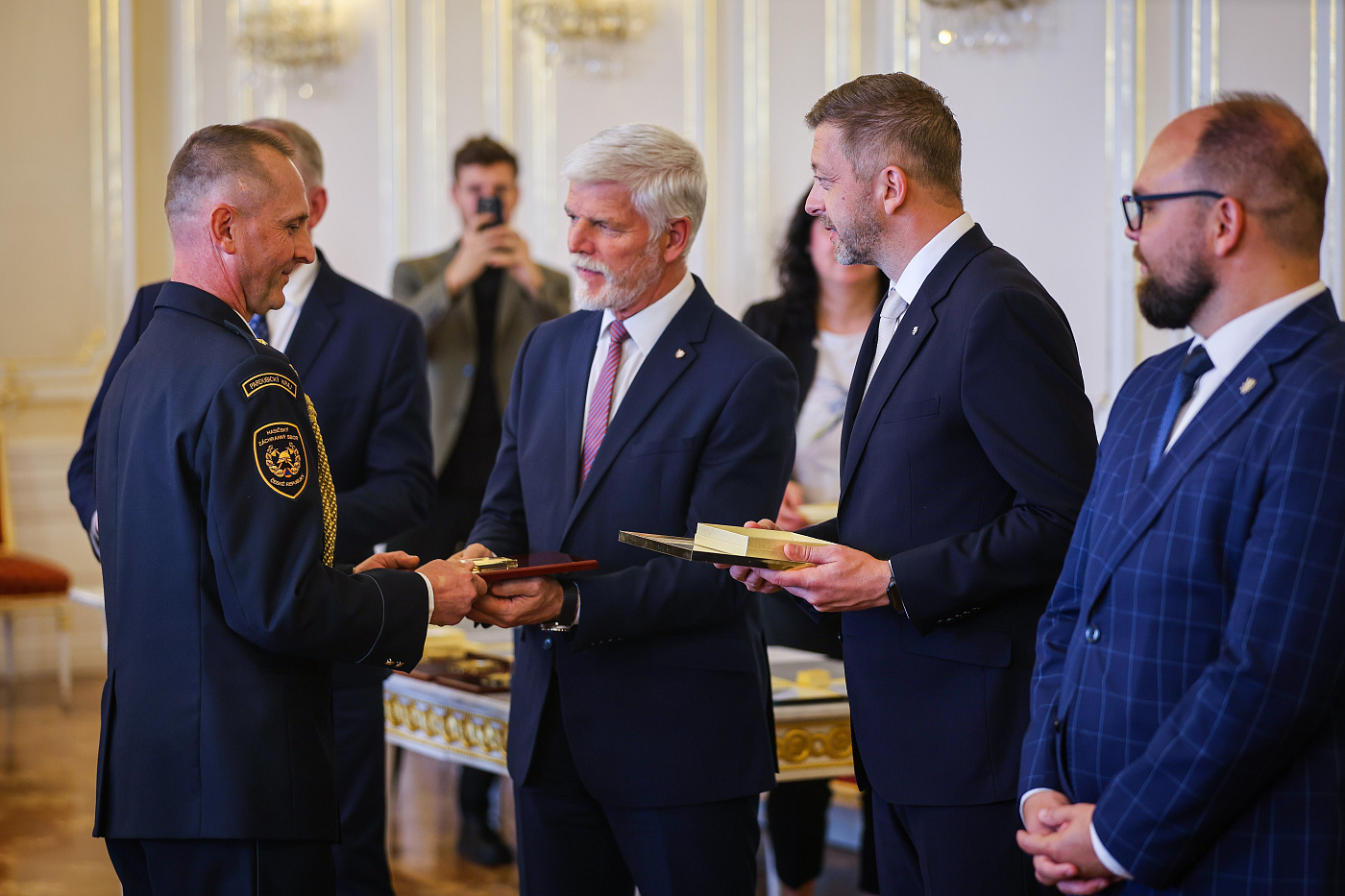 Prezident republiky ocenil hasiče za mimořádné záchranářské činy, předával Zlaté záchranářské kříže