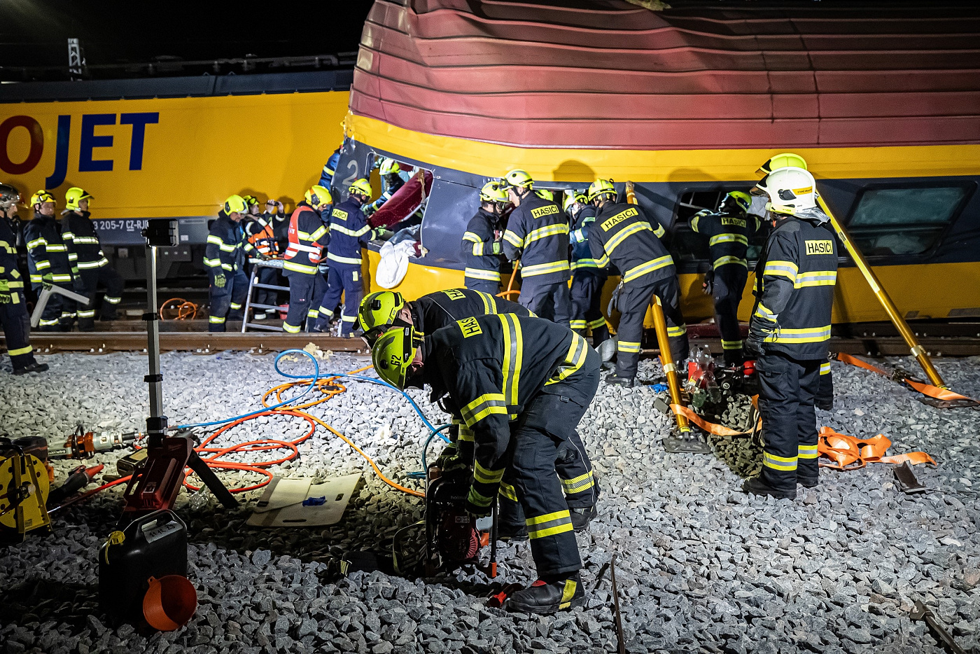 Hasiči z okresu Pardubice, Chrudim a sousedního Hradce Králové i hasiči Správy železnic ihned započali s vyprošťováním raněných osob. V provozu bylo několik hydraulických vyprošťovacích zařízení, kterými si hasiči vytvářeli prostor k samotnému vyproštění osob z trosek vagonů. Zranění pak byli tříděni dle metody START a předávání do péče záchranářům.