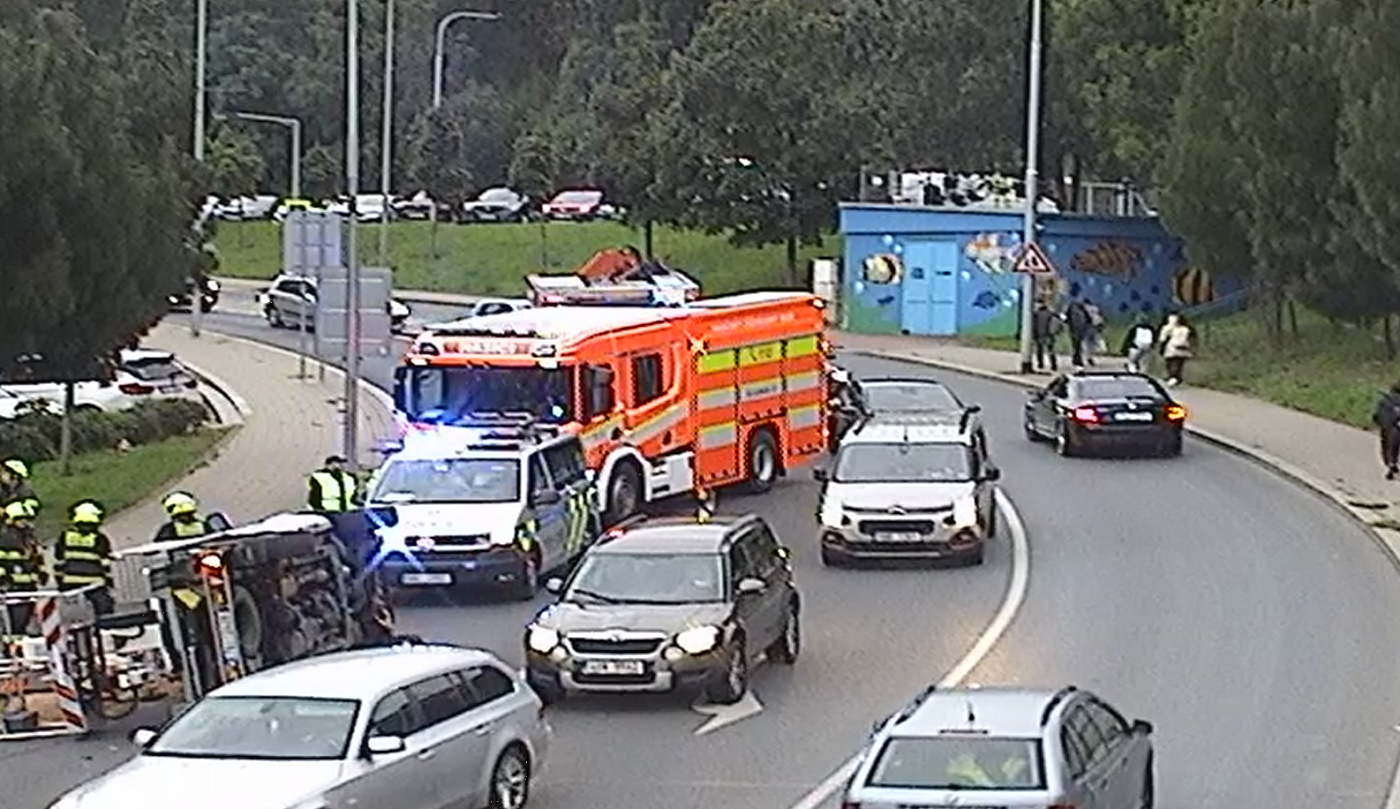 V Michelské ulici v Praze 4 zasahují profesionální hasiči u dopravní nehody dodávky, která se po nehodě převrátila na bok. Z důvodu zásahu složek IZS je provoz v místě události omezen.