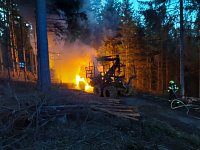 Dnes ráno před 7. hodinou zasahovaly jednotky hasičů v lese u obce Dolní Paseky na Ašsku. Hořel vyvážecí stroj, škoda byla vyčíslena na více než 2 miliony korun. Příčinou byla technická závada na elektroinstalaci.