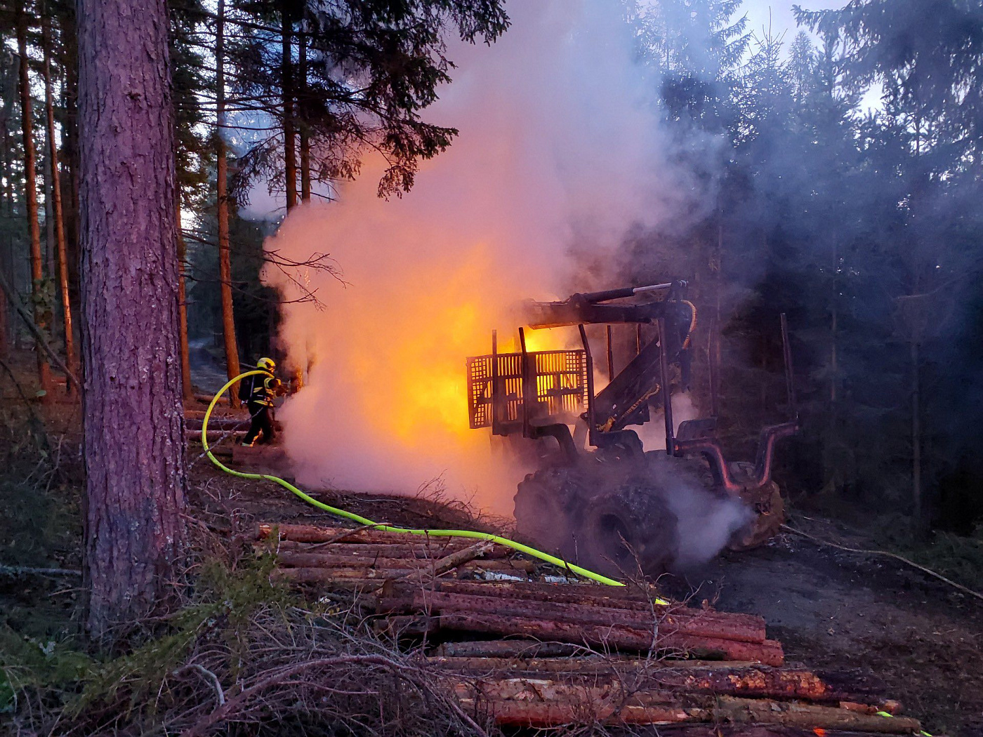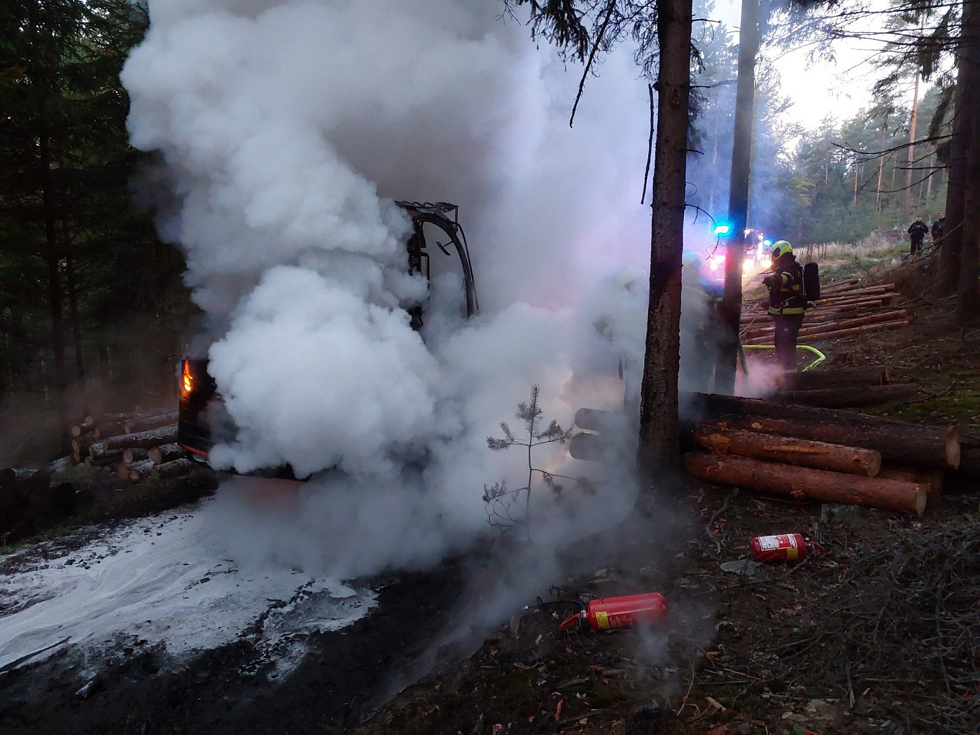 Dnes ráno před 7. hodinou zasahovaly jednotky hasičů v lese u obce Dolní Paseky na Ašsku. Hořel vyvážecí stroj, škoda byla vyčíslena na více než 2 miliony korun. Příčinou byla technická závada na elektroinstalaci.