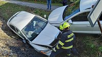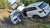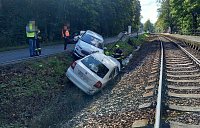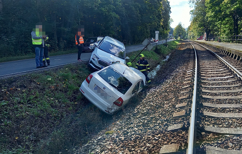 Dvě osobní vozidla se střetla v katastru obce Hronov, z důvodu nehody byl omezen provoz i na železnici