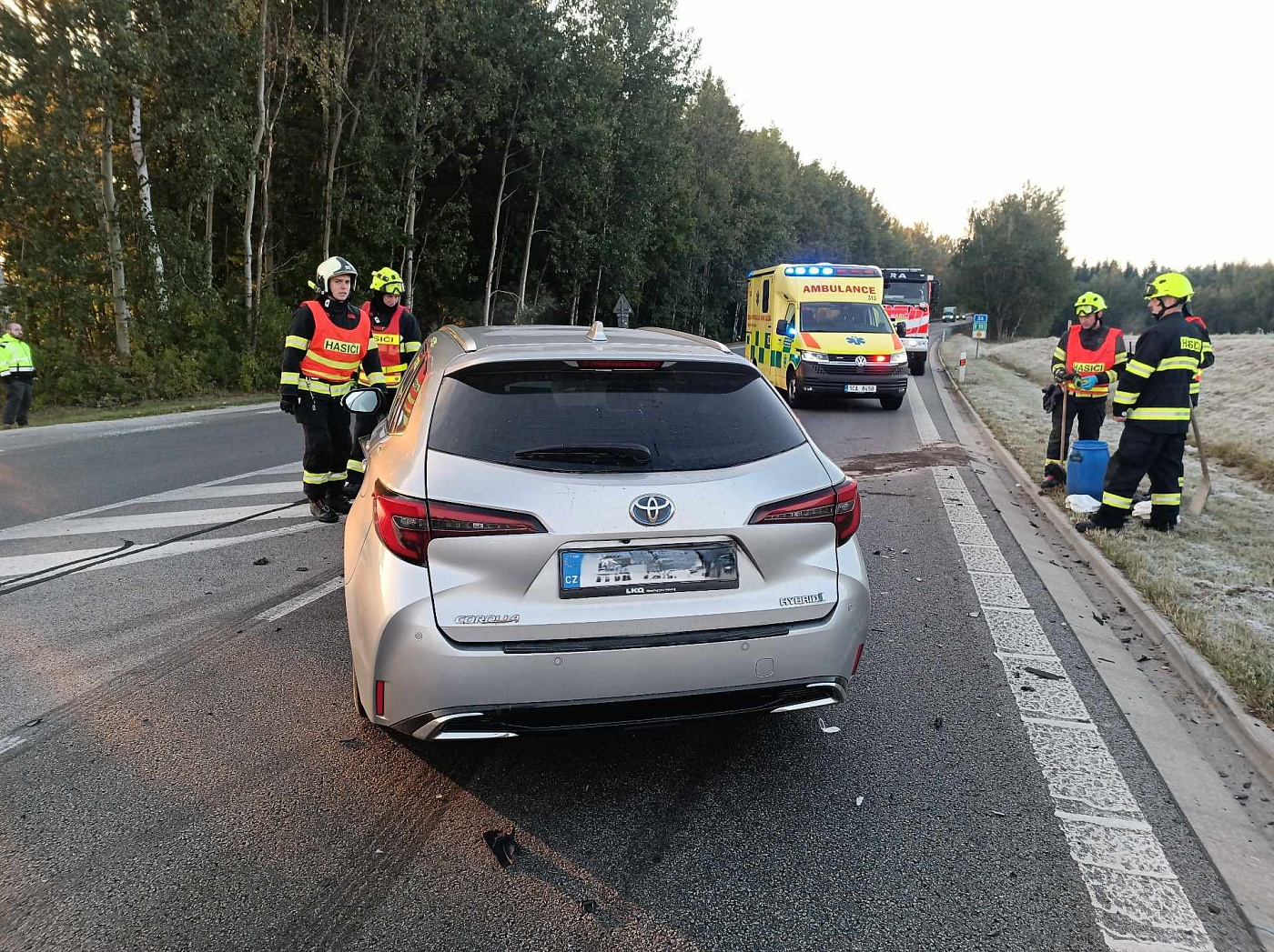 Střet osobního a nákladního auta řešila od 7:15 u Žďáru profesionální jednotka z Jindřichova Hradce. Když hasiči k nehodě přijeli, byly osádky obou vozů z aut venku a bez viditelných zranění. Vozy stály od sebe cca 30 metrů. Hasiči museli sanovat vyteklé provozní kapaliny.