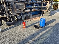V Malenovicích se na kruhovém objezdu převrátilo nákladní vozidlo a vysypal se z něj náklad