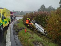 Na sjezdu z dálnice D6 směrem na Globus zasahují hasiči u nehody osobního auta se zraněním jedné osoby. Provoz v místě je omezen.