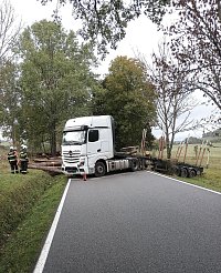 U dopravní nehody nákladního automobilu na silnice z Chvalšin na Smědeč zasahuje jednotka profesionálních hasičů z Křemže. Jednu zraněnou osobu si převzala do péře zdravotnická záchranná služba. Hasiči vozidlo zajistili, nyní bude probíhat překládka dřeva, kterou zajišťuje provozovatel vozidla.