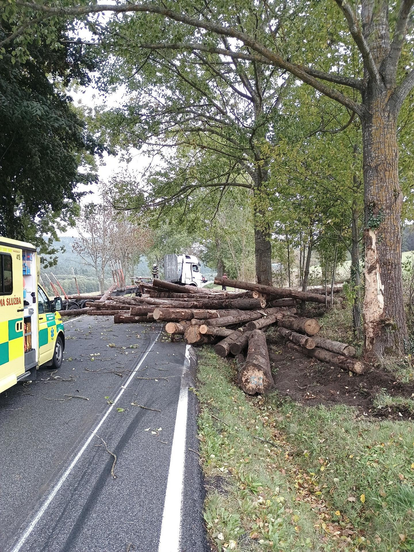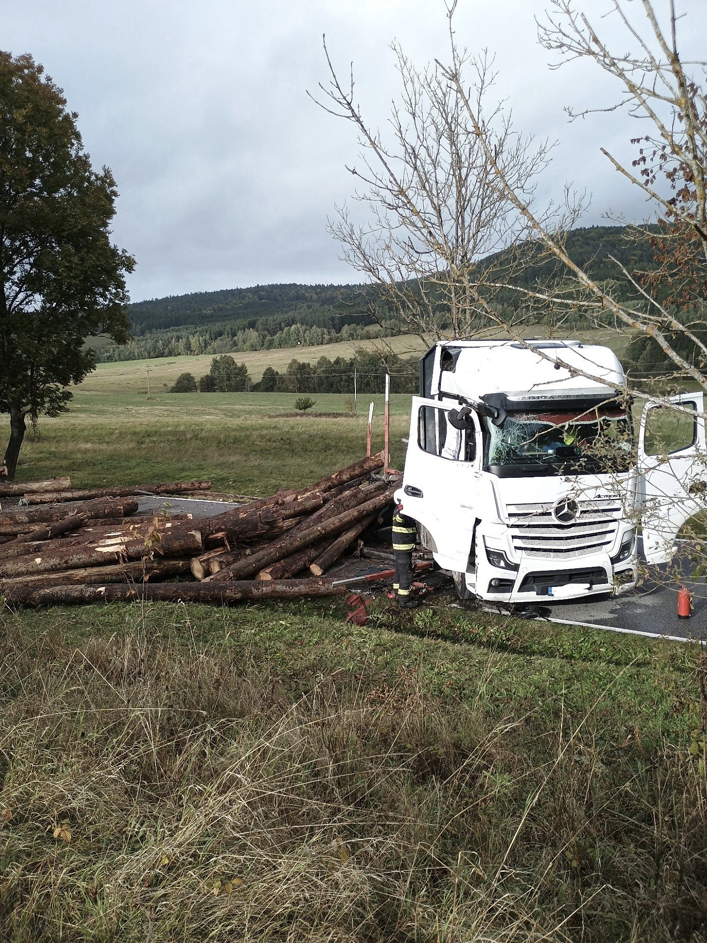 U dopravní nehody nákladního automobilu na silnice z Chvalšin na Smědeč zasahuje jednotka profesionálních hasičů z Křemže. Jednu zraněnou osobu si převzala do péře zdravotnická záchranná služba. Hasiči vozidlo zajistili, nyní bude probíhat překládka dřeva, kterou zajišťuje provozovatel vozidla.