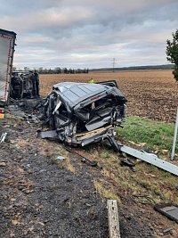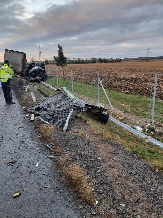 Z důvodu vyšetřování dopravní nehody je obousměrně uzavřena silnice I/53 u Těšetic. Nákladní vůz tam narazil do osobního auta s přívěsem stojícím na kraji vozovky směrem na Znojmo. Na místě přistával vrtulník ZZS.