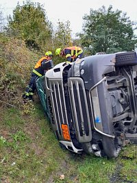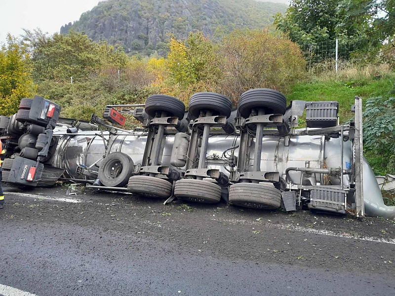 Převrácená cisterna s asfaltem zaměstnala před sedmnáctou hodnou v Mostě čtyři jednotky hasičů
