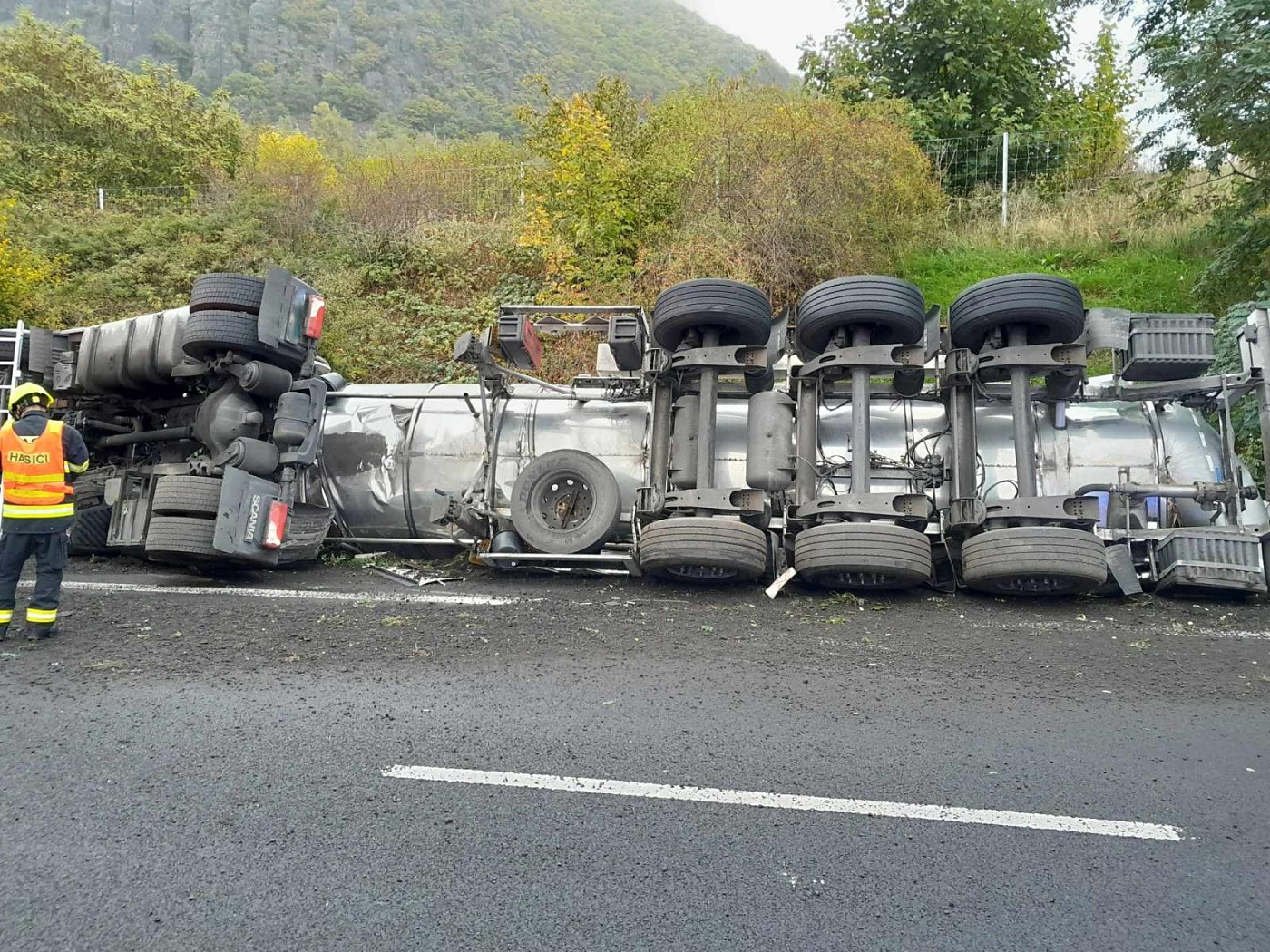 Hasiči na místě zajistili převrácenou cisternu převážející asfalt. Bohužel nebylo v silách zasahujících jednotek cisternu převrátit či přečerpat. To si zajistí dopravce. Dobrovolná jednotka z Mostu bude zajišťovat noční dozor, silnice bude v jednom pruhu otevřena.