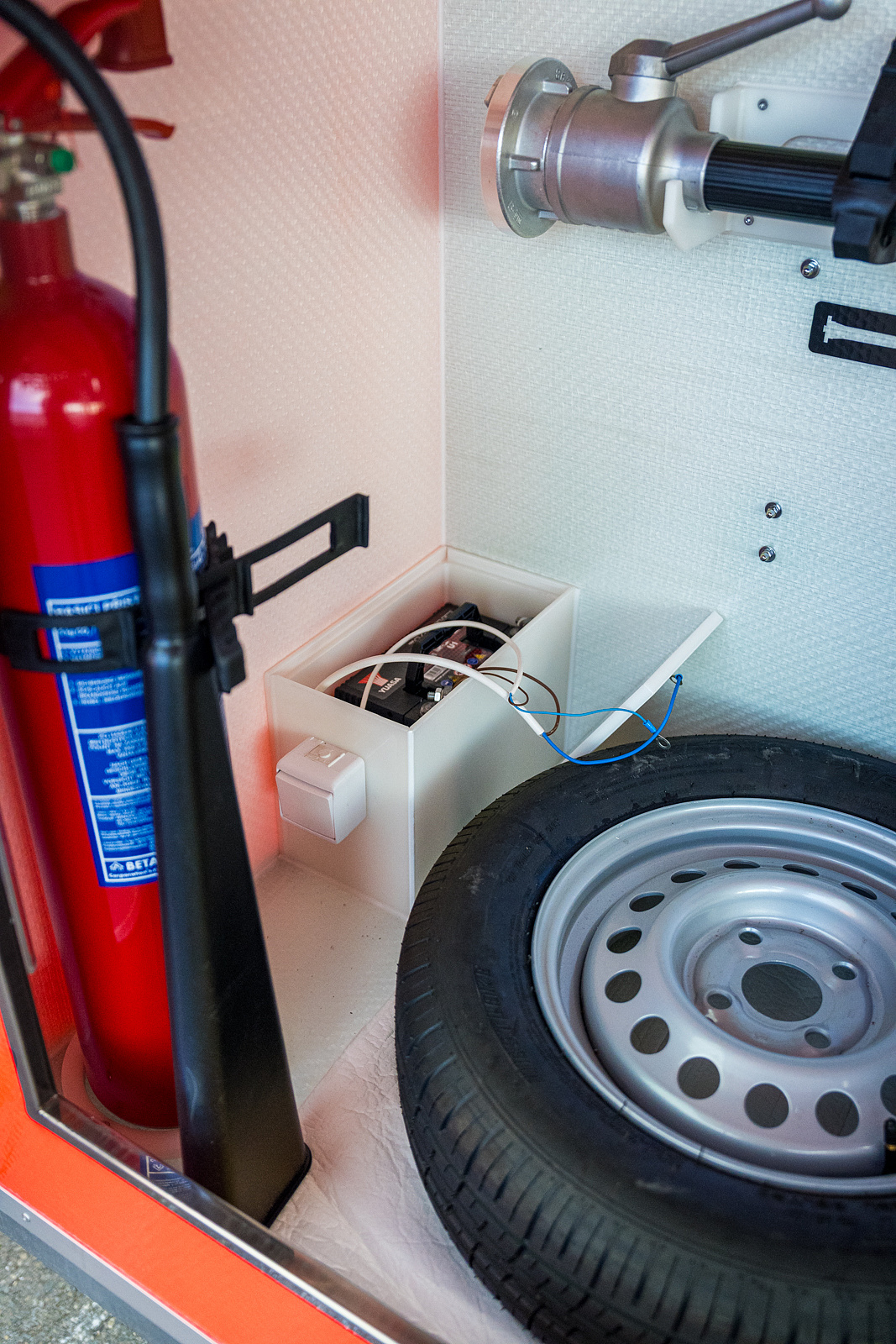 Elektromobilita přináší nové výzvy i pro hasičské sbory. Proto jsme vyvinuli speciální modul určený pro hašení elektromobilů a baterií, který je možné integrovat do přívěsu. Díky tomu je náš přívěs připraven i na moderní zásahy, kde je potřeba specifická technika a rychlá reakce.