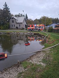 Vodu hasiči čerpali z místního rybníku. Majitel potřeboval první pomoc, utrpěl totiž popáleniny 2. stupně a vrtulník ho odvezl do nemocnice.
