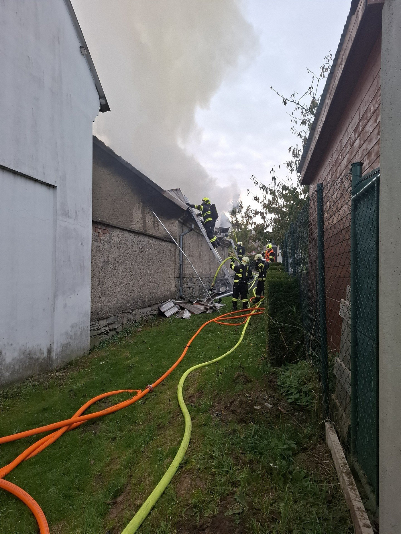 Hasiči uchránili koně, kterého před požárem odvedli do bezpečí. Nedotčený zůstal taky sousední rodinný dům, kterého se dařilo ochlazovat jedním C proudem.
