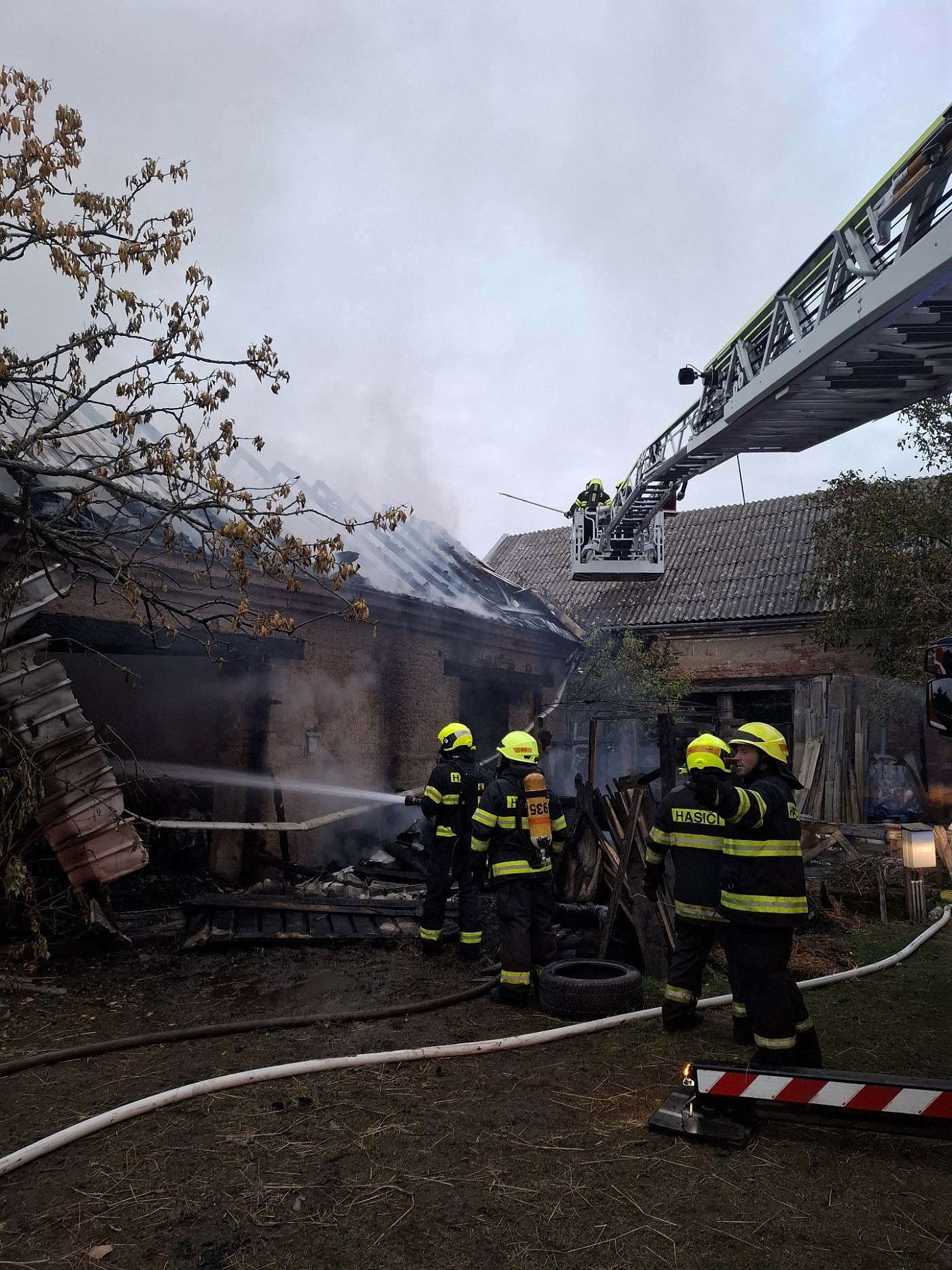 Hasiči vyjeli k požáru hospodářské budovy v obci Dolany. Při příjezdu jednotek hořel objekt v plném rozsahu, proto bylo nasazeno pět útočných proudů a povolána výšková technika, velkokapacitní cisterna a protiplynový speciál z centrály v Olomouci.