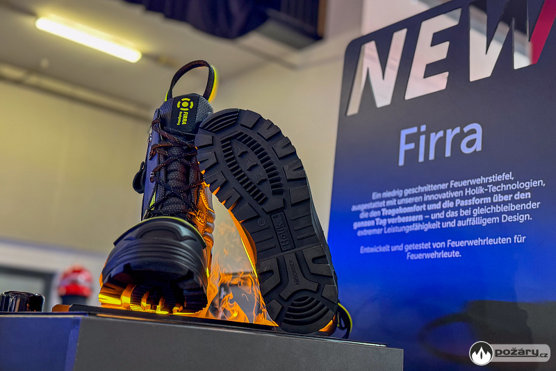 Tatra s THT mají na stánku lesní speciál na podvozku Force, ke kterému patří i čerpadlo od Pavliše a Hartmanna. Holík na veletrhu představuje novinku – sníženou zásahovou obuv Firra.