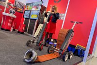 Eccotarp dovezl na veletrh nový vozík pro motání hadic – je elektrický, pohání ho vyměnitelné akumulátory Milwaukee. Nechybí ani úkapové vany či magnetická ucpávka ze silikonu.