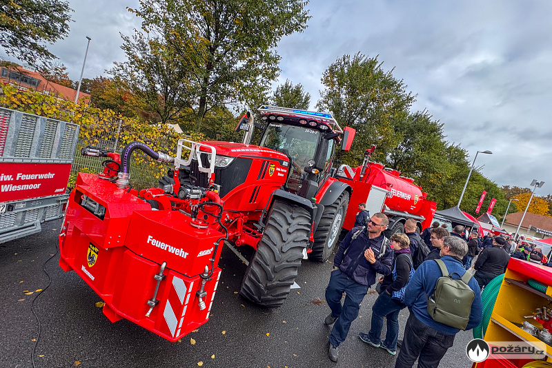 Na venkovních plochách výrazně dominuje hasičská technika – Rosenbauer, Magirus, Lentner či Schmitz a další. Nechybí hvězda sociálních sítí posledních týdnů – hasičský traktor jedné z německých dobrovolných jednotek.