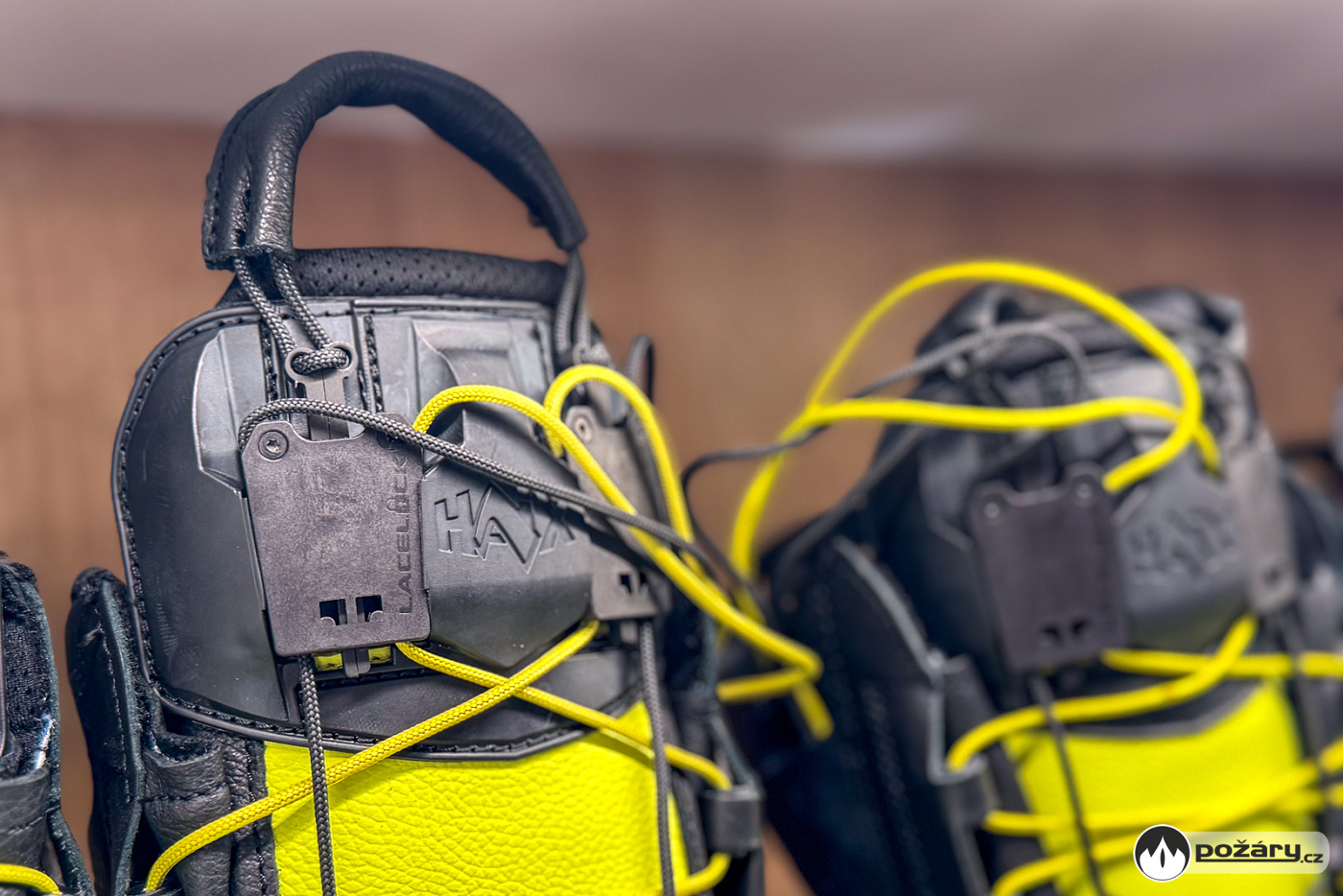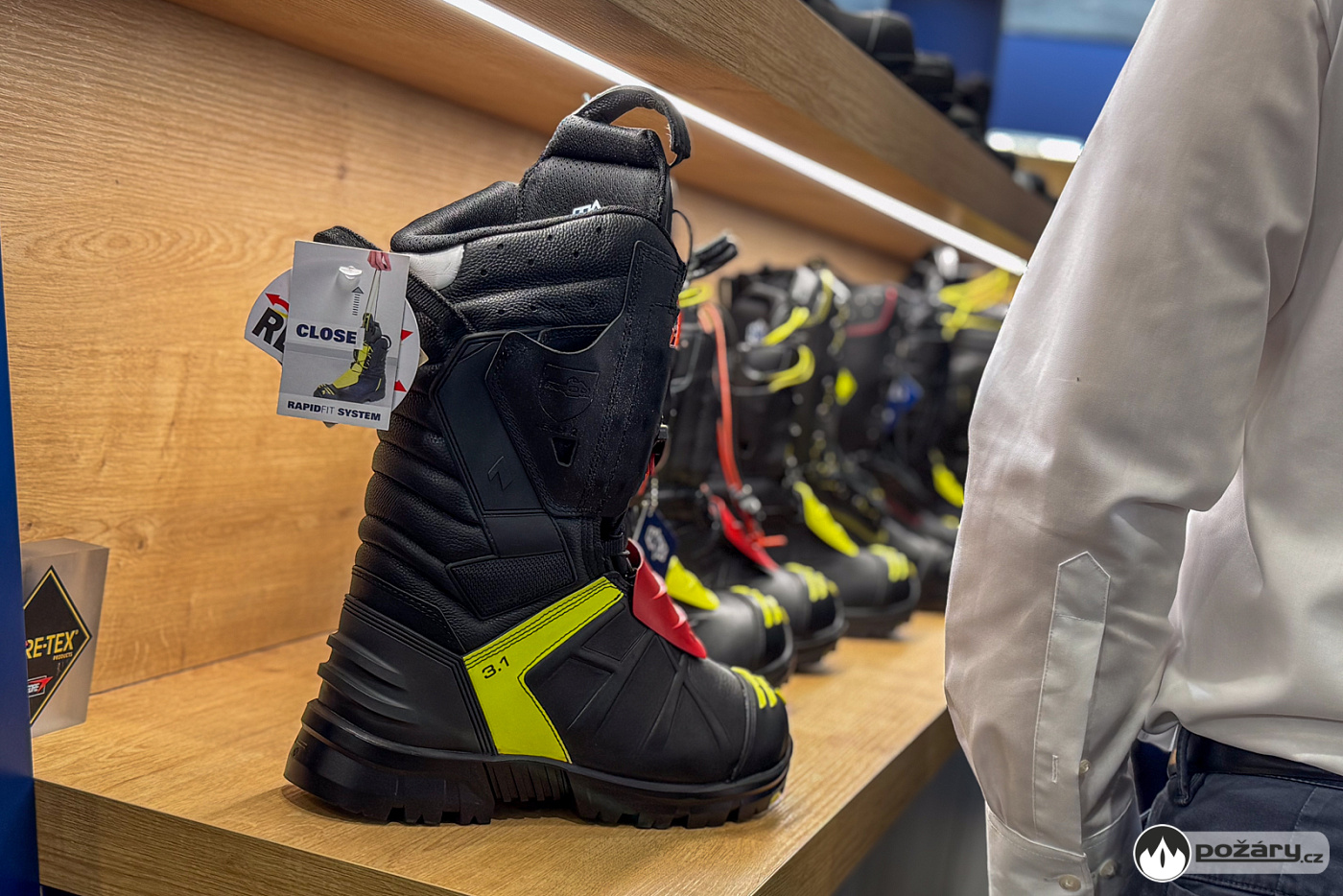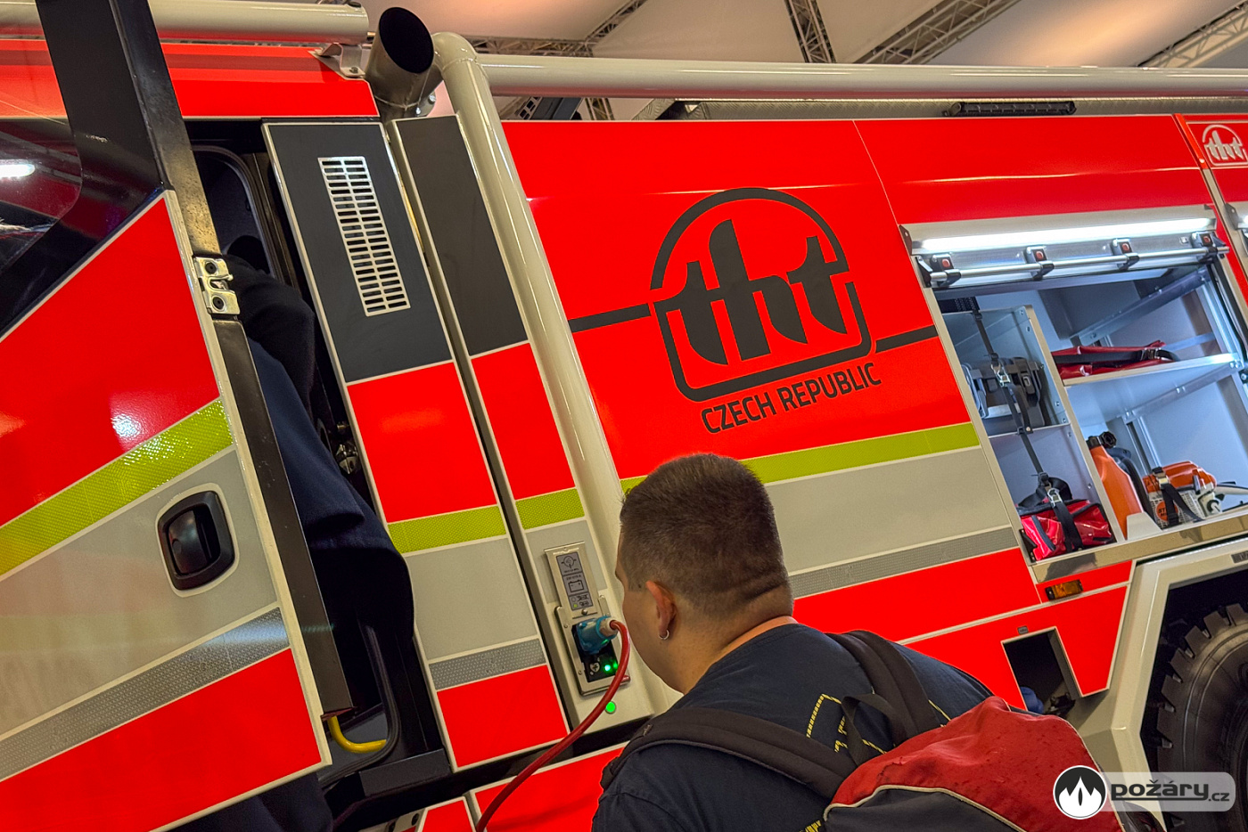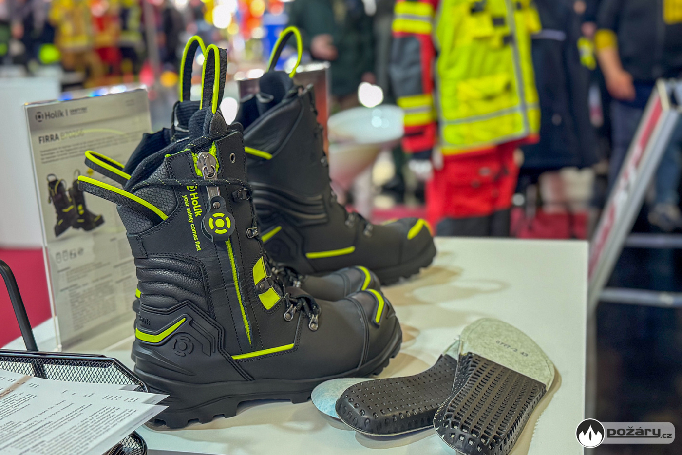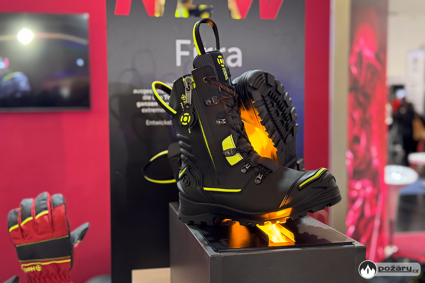 Tatra s THT mají na stánku lesní speciál na podvozku Force, ke kterému patří i čerpadlo od Pavliše a Hartmanna. Holík na veletrhu představuje novinku – sníženou zásahovou obuv Firra.