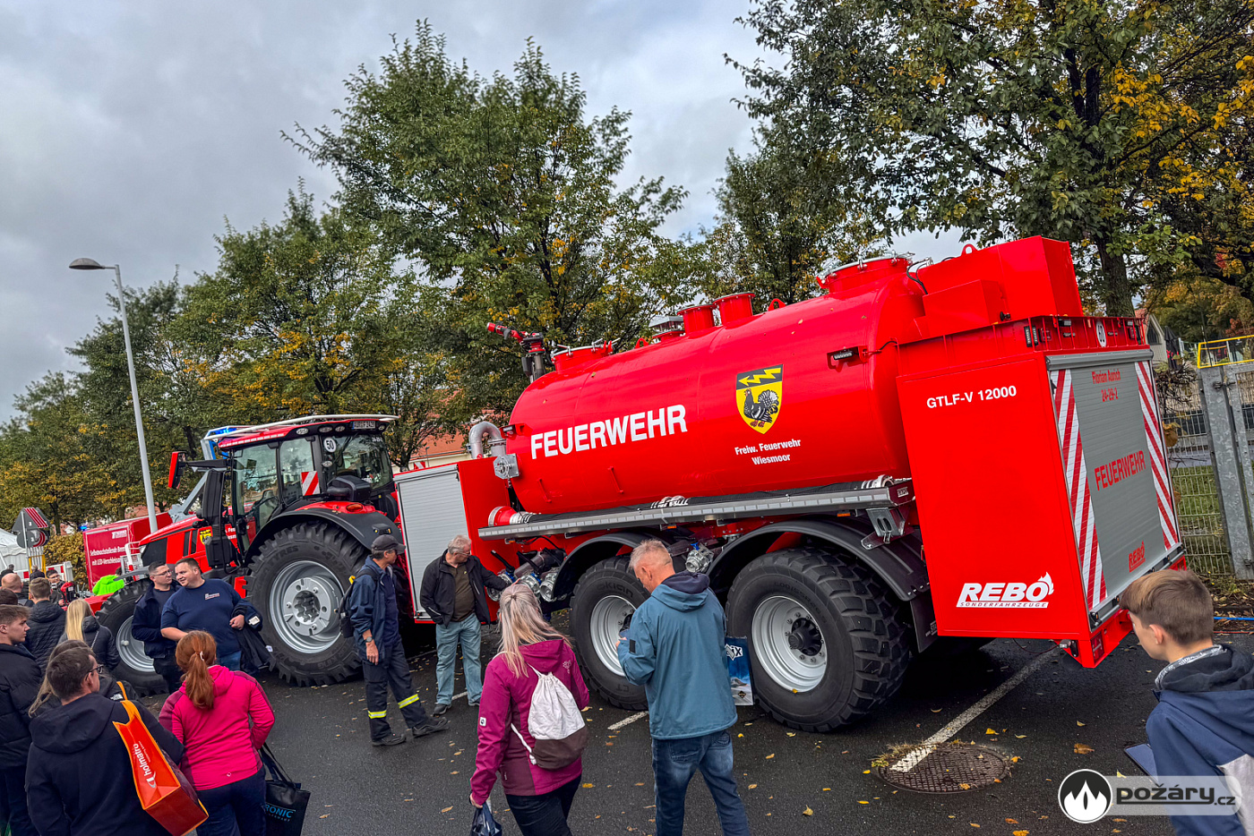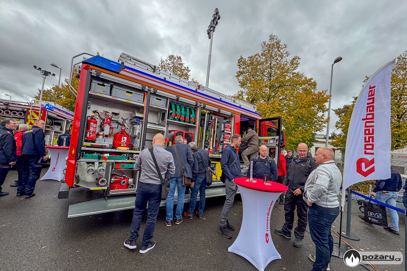 Na venkovních plochách výrazně dominuje hasičská technika – Rosenbauer, Magirus, Lentner či Schmitz a další. Nechybí hvězda sociálních sítí posledních týdnů – hasičský traktor jedné z německých dobrovolných jednotek.