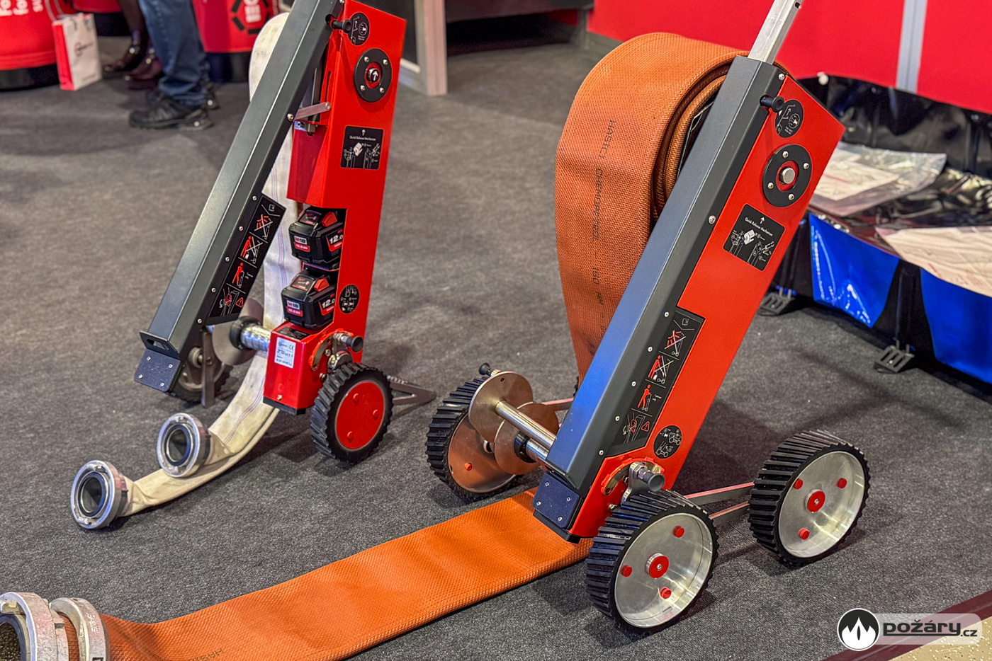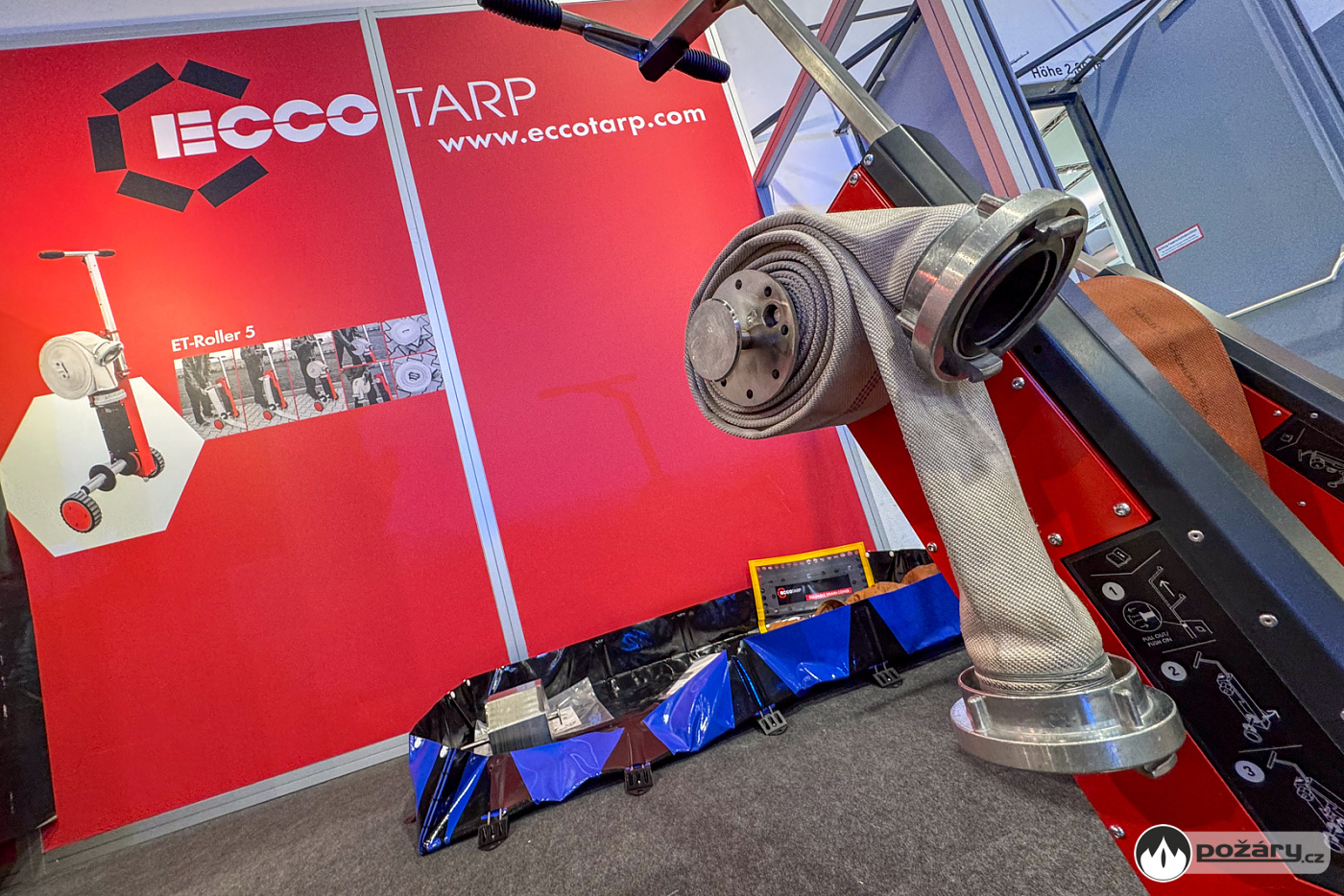Eccotarp dovezl na veletrh nový vozík pro motání hadic – je elektrický, pohání ho vyměnitelné akumulátory Milwaukee. Nechybí ani úkapové vany či magnetická ucpávka ze silikonu.