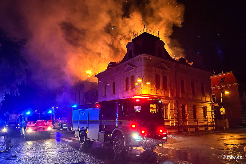 Nebe nad Varnsdorfem rozzářil požár bývalého hotelu, vyhlášen byl druhý stupeň poplachu