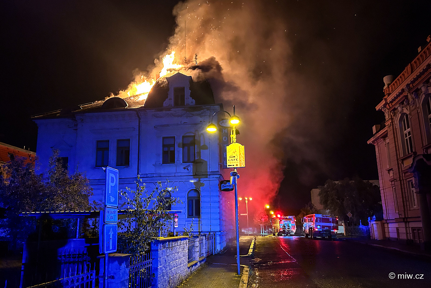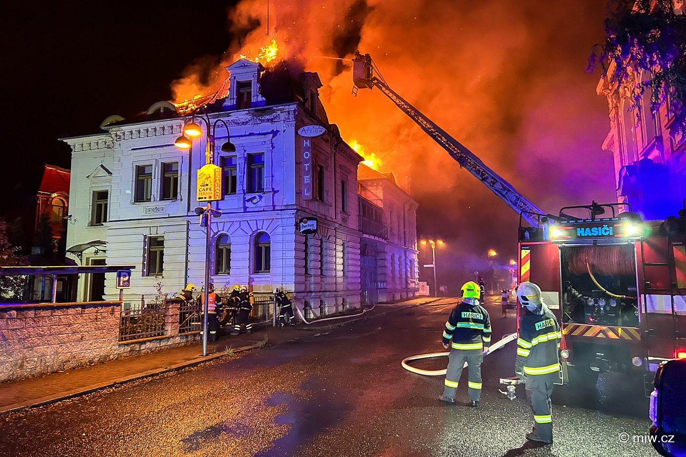 Nebe nad Varnsdorfem rozzářil požár bývalého hotelu, vyhlášen byl druhý stupeň poplachu