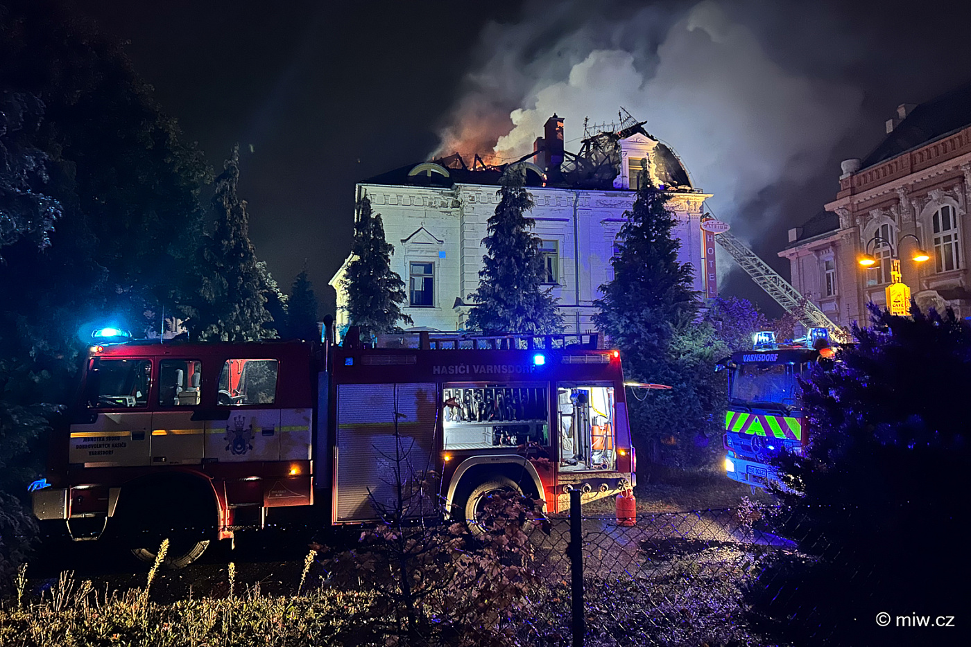 Minutu po půl čtvrté ráno ve čtvrtek 9. října 2025 se Šluknovským výběžkem opět rozezněly sirény, nahlášen byl požár střechy bývalého hotelu ve Varnsdorfu.