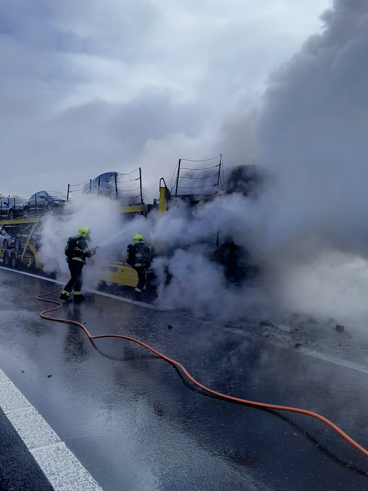 Ve 12:00 přijalo operační středisko oznámení o požáru kabiny kamionu na 80. kilometru dálnice D8 ve směru na Ústí nad Labem. Na místo události vyjely tři jednotky požární ochrany. Požár, který se z kabiny rozšířil na převážené automobily, se zasahujícím hasičům podařilo lokalizovat ve 12:30.