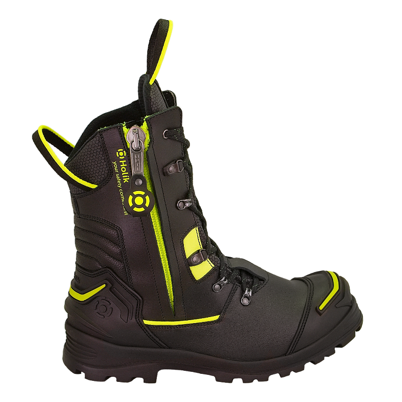 Jazyk může být textilní nebo kožený, ochrana kotníků je integrovaná do vnitřní konstrukce svršku. Část reflexních prvků zůstává viditelná – a tedy účínná – i při nošení zásahového oděvu.