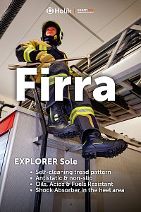 Firma Holík představila na veletrhu Florian v Drážďanech hasičskou obuv v nízkém střihu na spodní hranici kategorie „C“, vybavená speciálními technologiemi Holík.