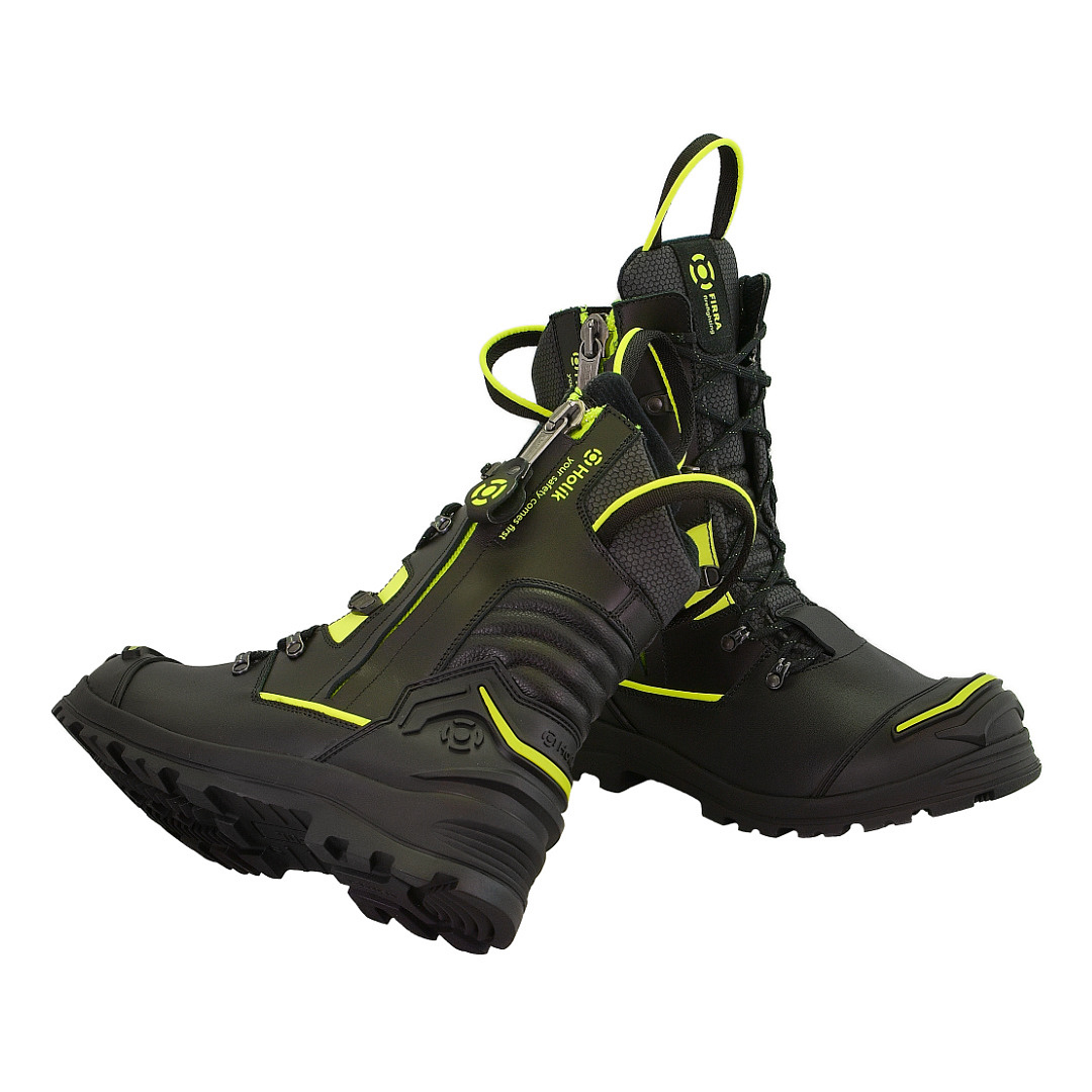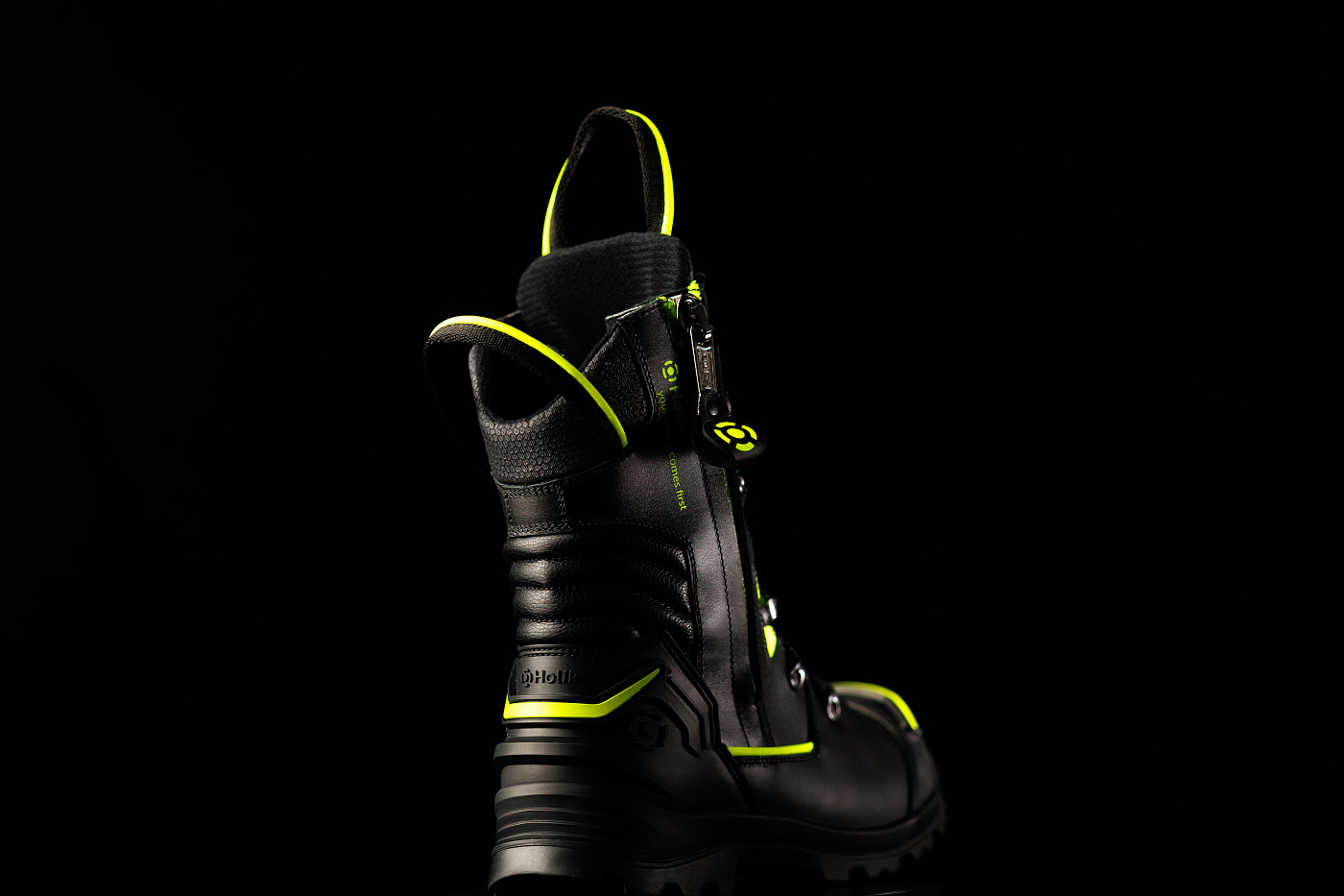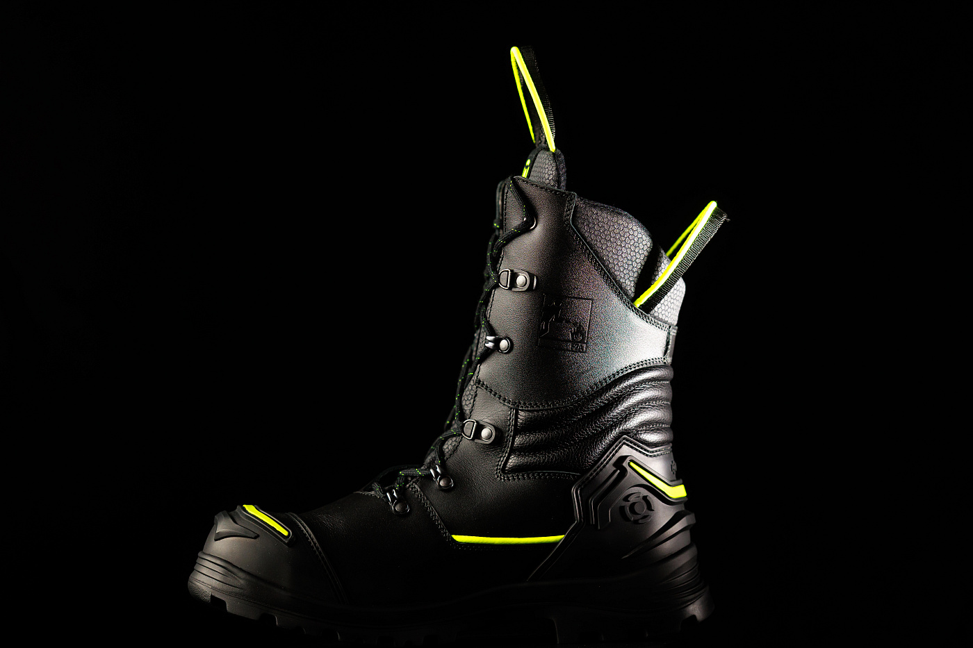 Jazyk může být textilní nebo kožený, ochrana kotníků je integrovaná do vnitřní konstrukce svršku. Část reflexních prvků zůstává viditelná – a tedy účínná – i při nošení zásahového oděvu.