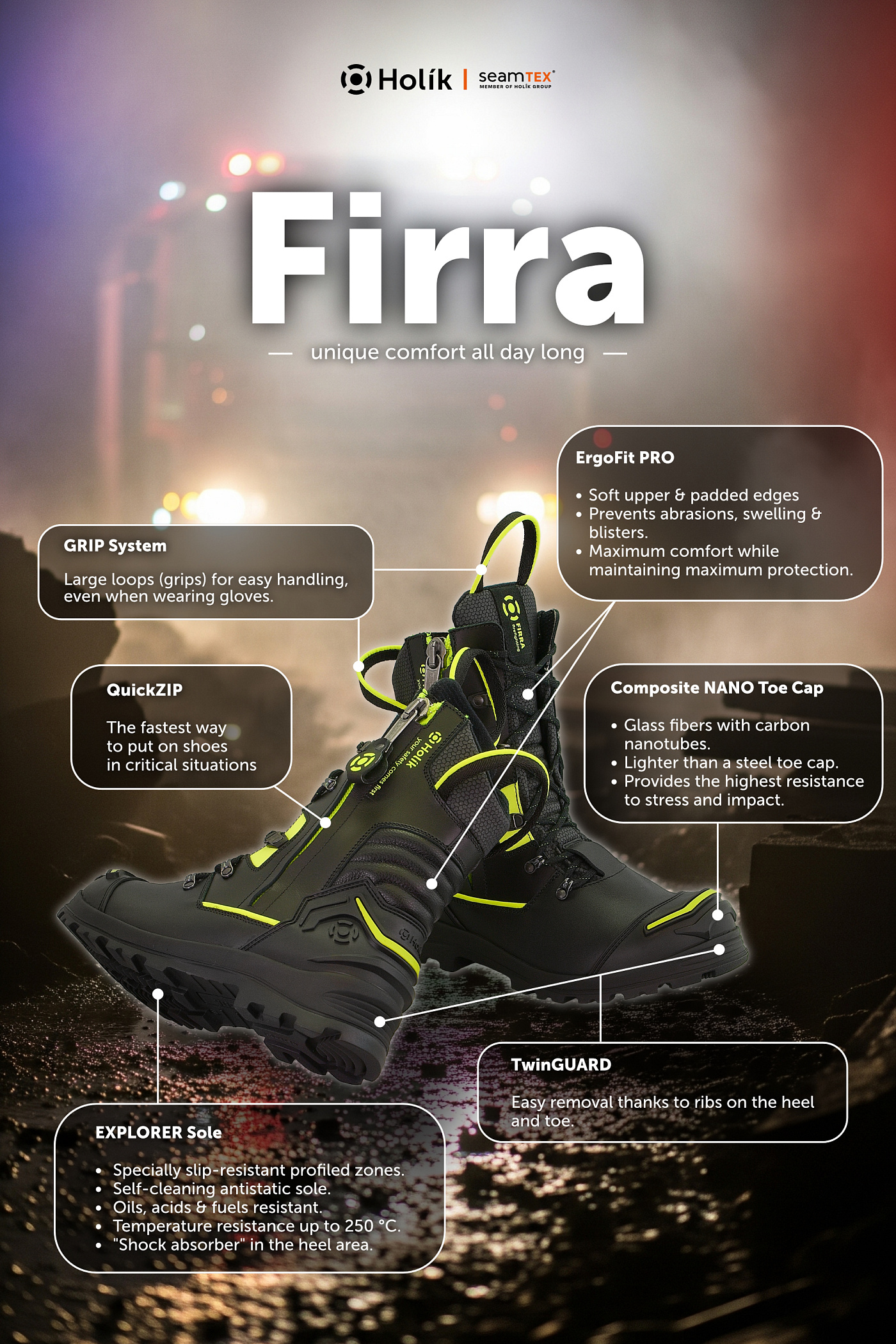 Firma Holík představila na veletrhu Florian v Drážďanech hasičskou obuv v nízkém střihu na spodní hranici kategorie „C“, vybavená speciálními technologiemi Holík.