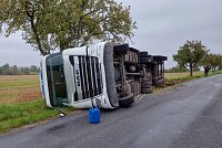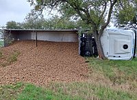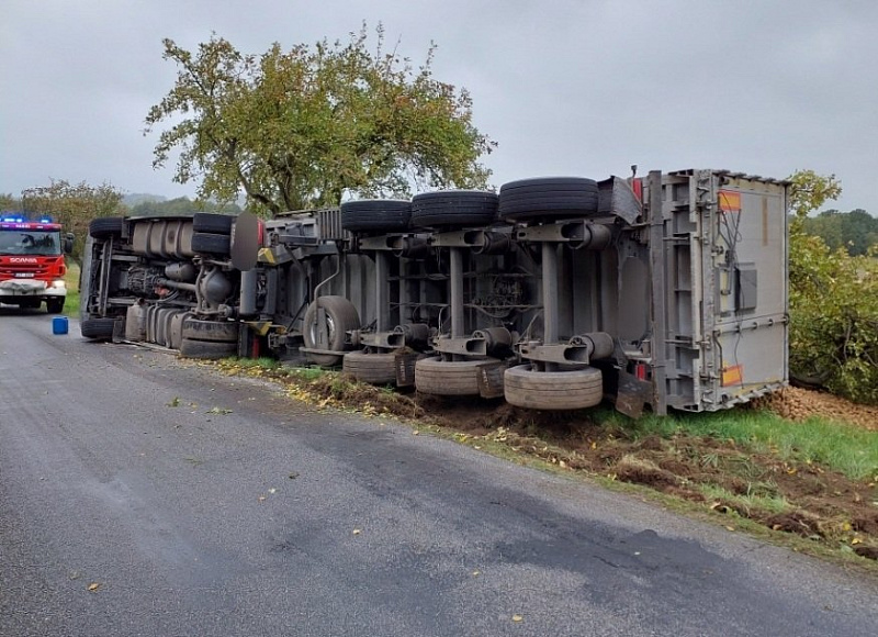 V obci Ranná se převrátil do příkopu kamion přepravující brambory