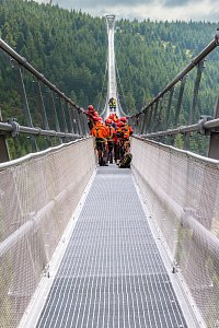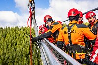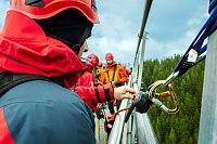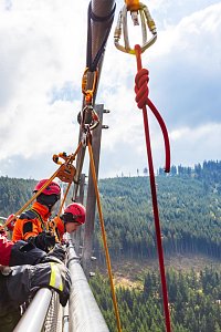 Pardubičtí lezci trénovali záchranu osob na nejdelším visutém mostě světa Sky Bridge 721 v Dolní Moravě