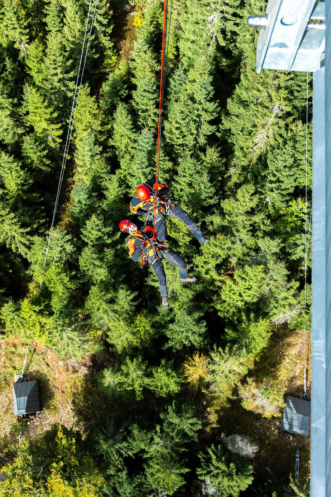 Pardubičtí lezci trénovali záchranu osob na nejdelším visutém mostě světa Sky Bridge 721 v Dolní Moravě