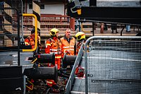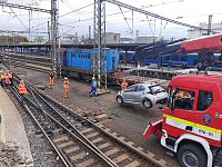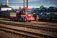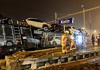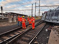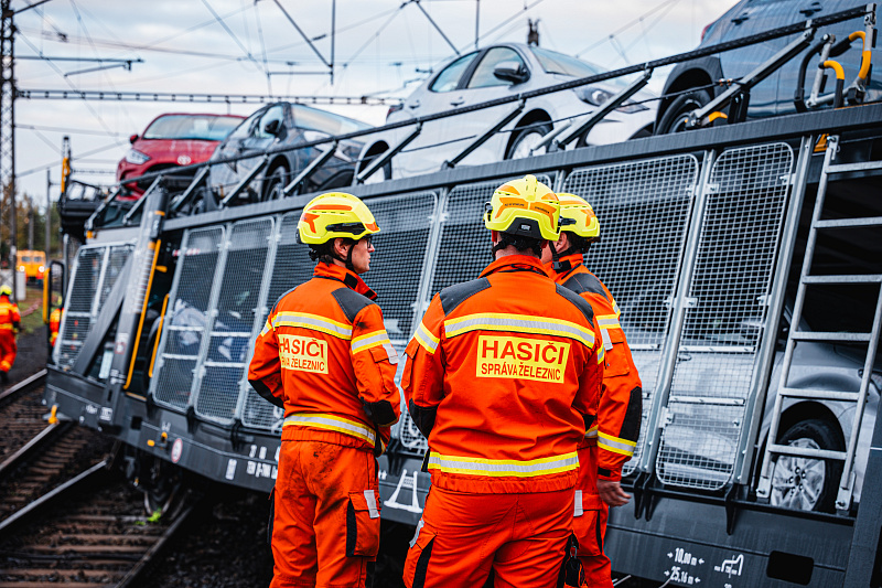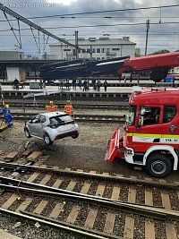 Hasiči Správy železnic zasahují od ranních hodin v Kolíně, kde došlo k vykolejení dvou nákladních vagónů. Jeden převážel osobní auta.