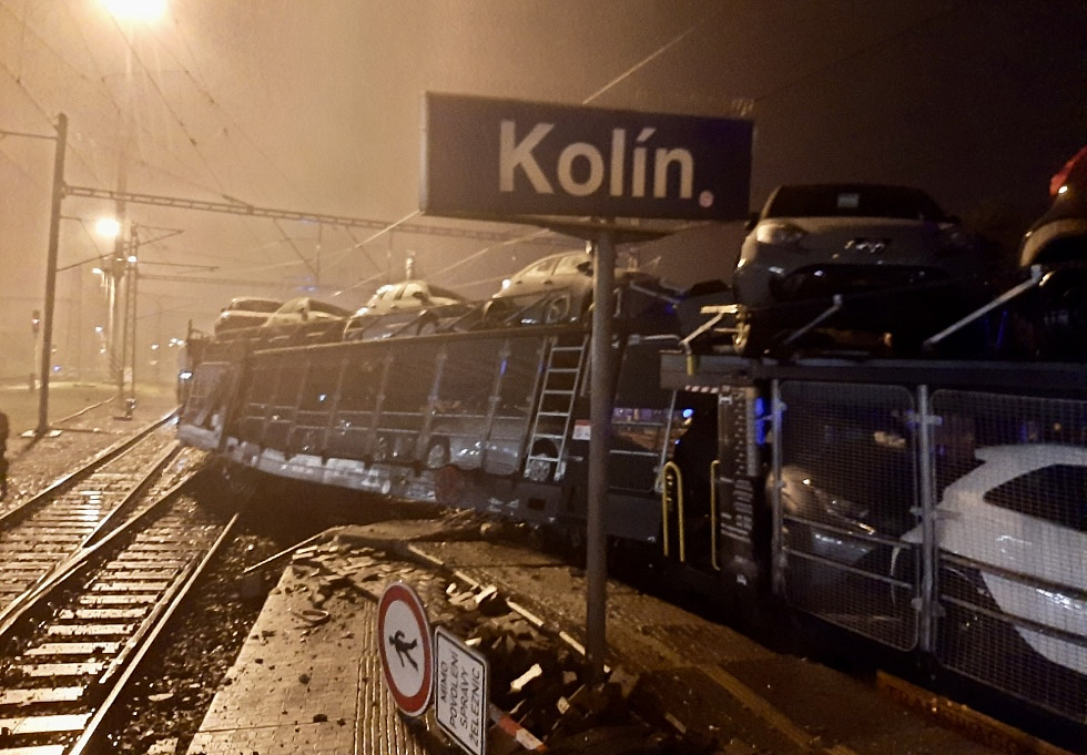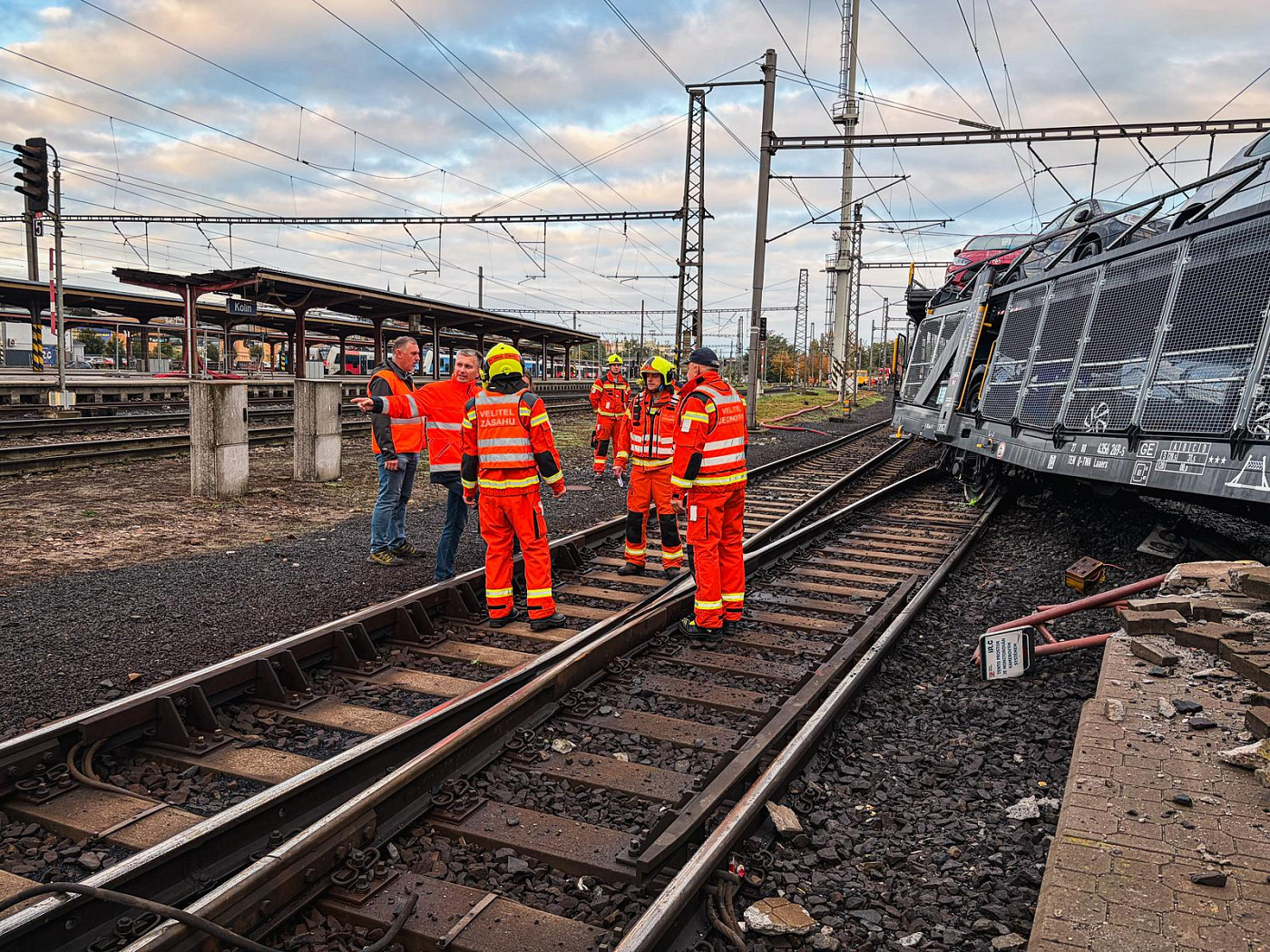 Hasiči Správy železnic zasahují od ranních hodin v Kolíně, kde došlo k vykolejení dvou nákladních vagónů. Jeden převážel osobní auta.