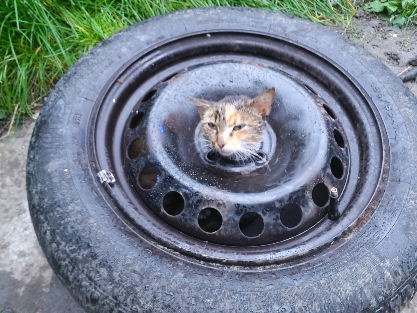 Hasiči z Vysokého Mýta vyprošťovali zvědavou kočku, která uvízla hlavou v disku kola. Kočka je v pořádku a zřejmě jen testovala připravenost hasičů.
